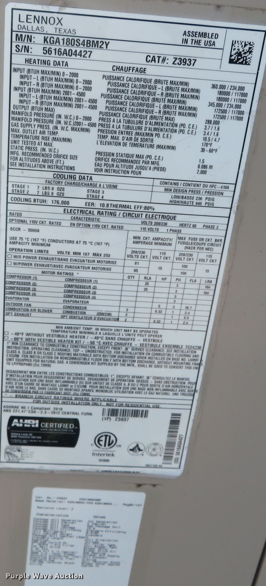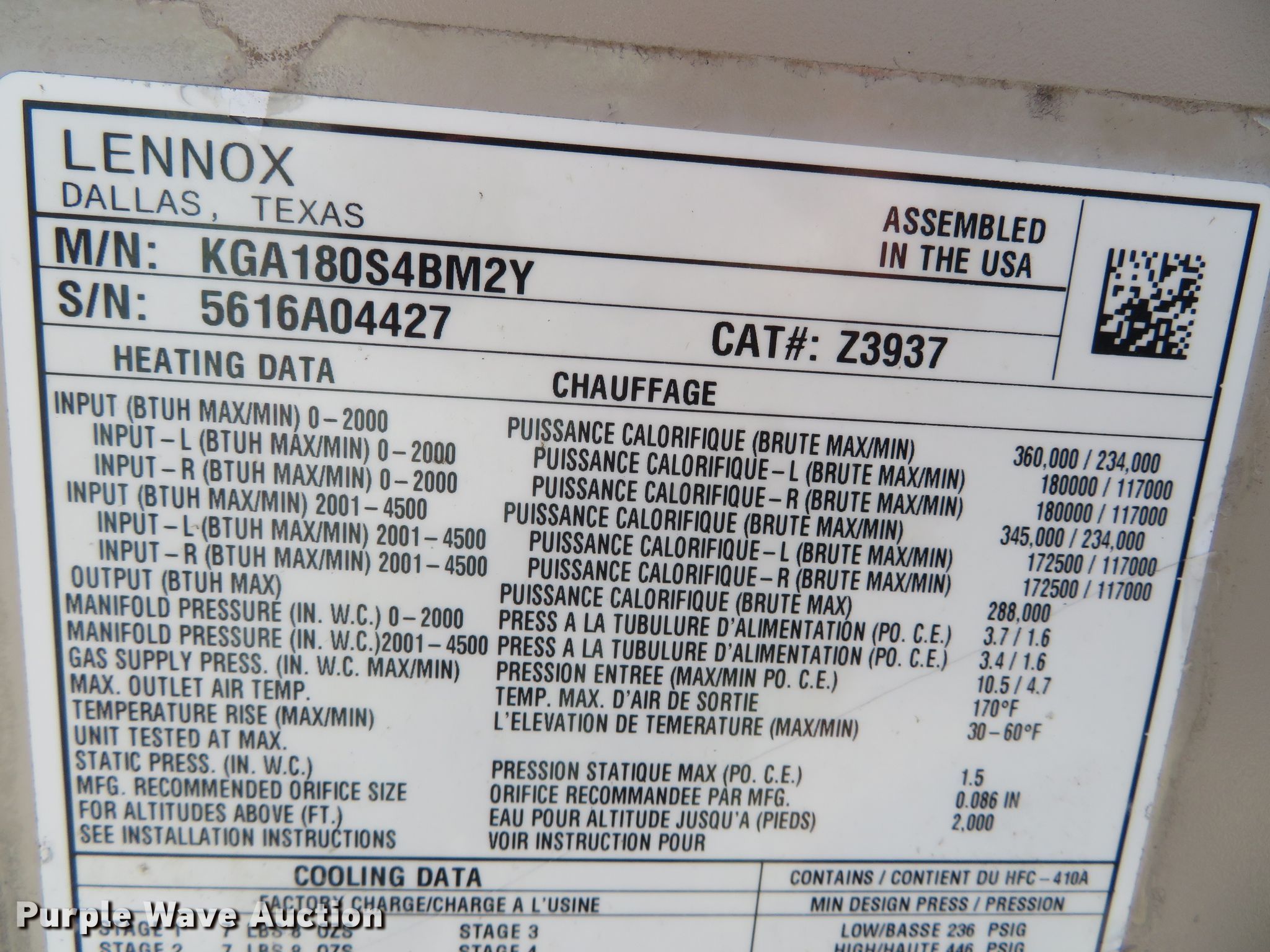 Lennox KGA180S4BM2Y HVAC | SOLD! Tuesday November 30 Government Auction