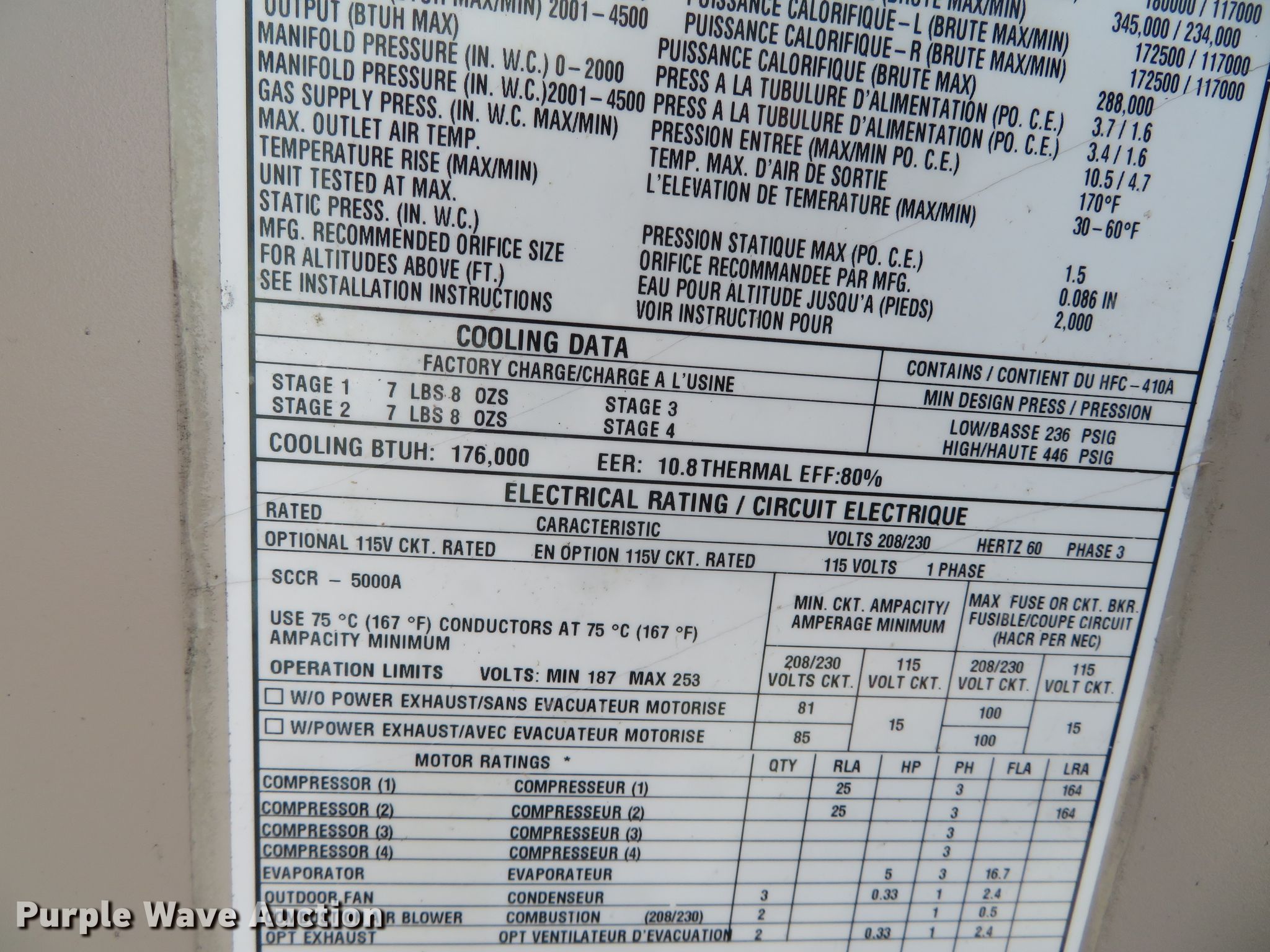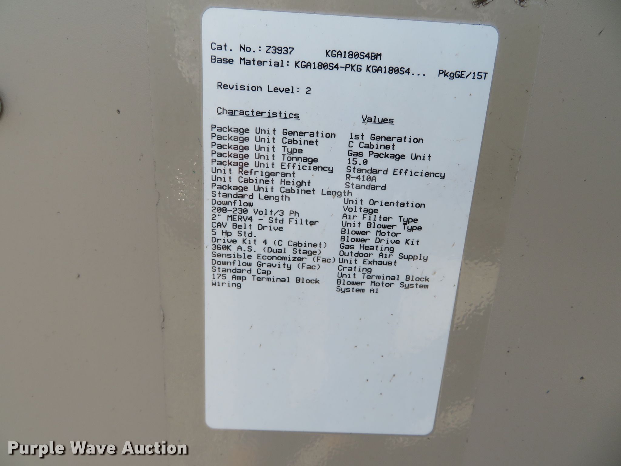 Purple Wave is selling a used Appliances in Missouri. This item is a Lennox KGA180S4BM2Y HVAC with the following: 208/230V, Three phase