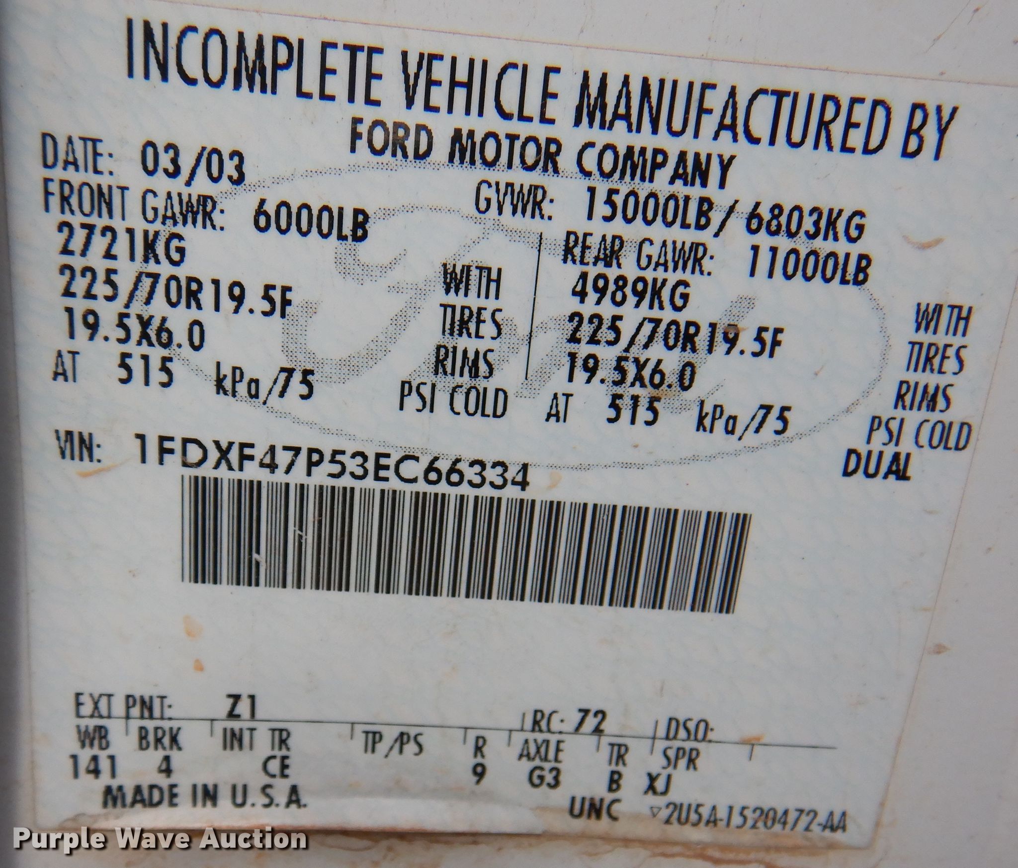 Purple Wave is selling a used Truck Chassis in Oklahoma. This item is a 2003 Ford F450 Super Duty truck cab and chassis with the following: Miles: 101,722 on odometer, VIN: 1FDXF47P53EC66334