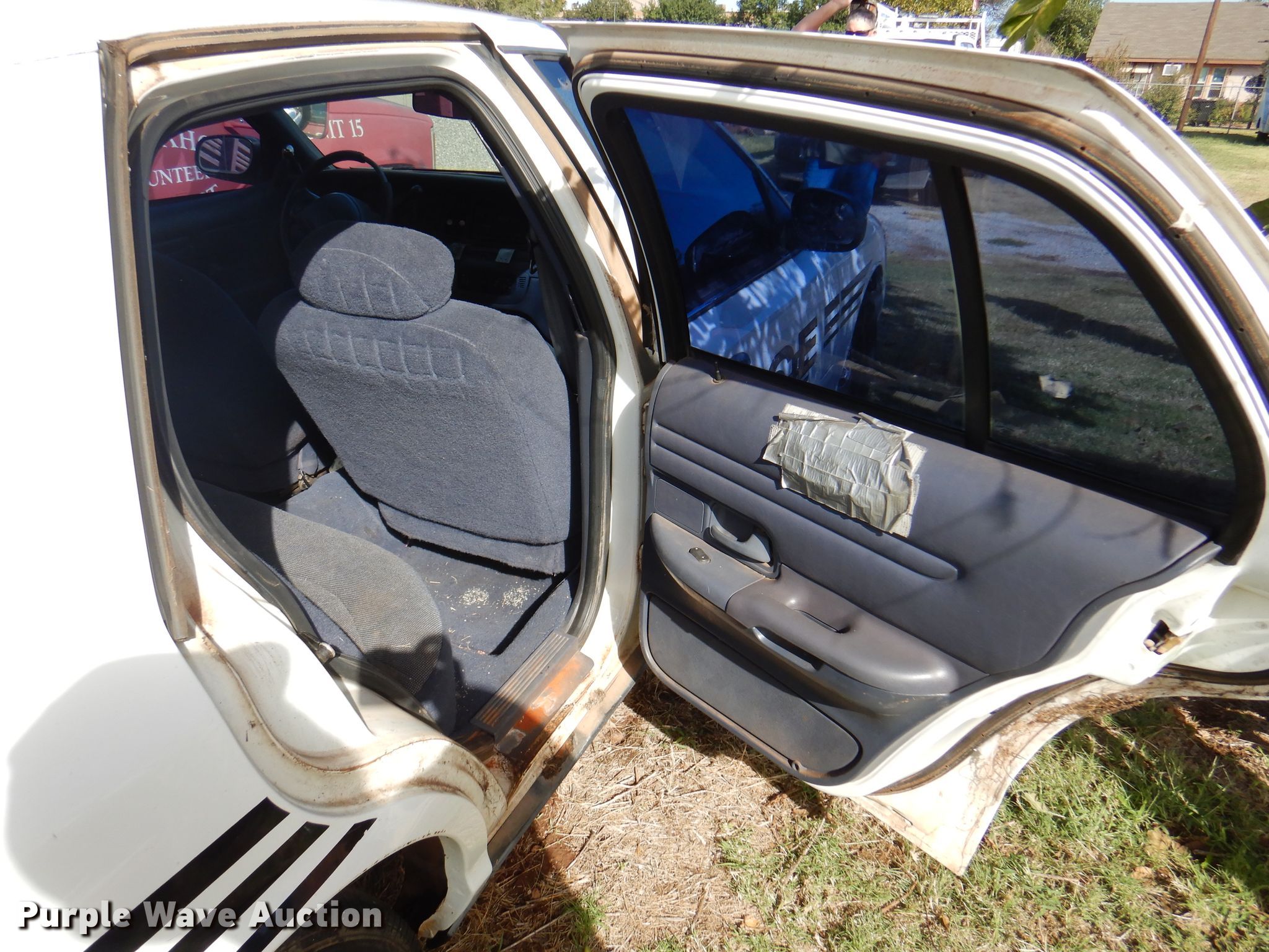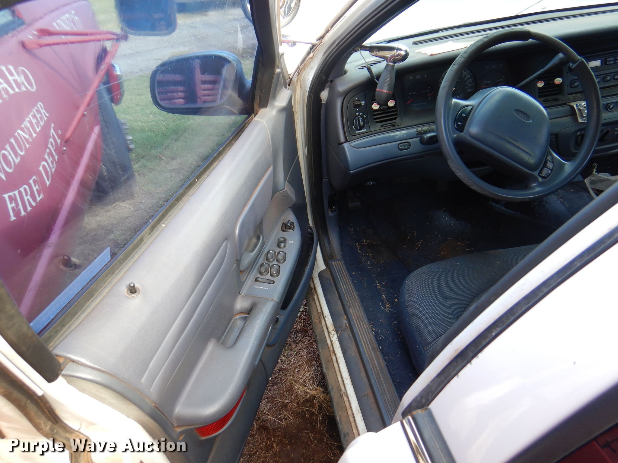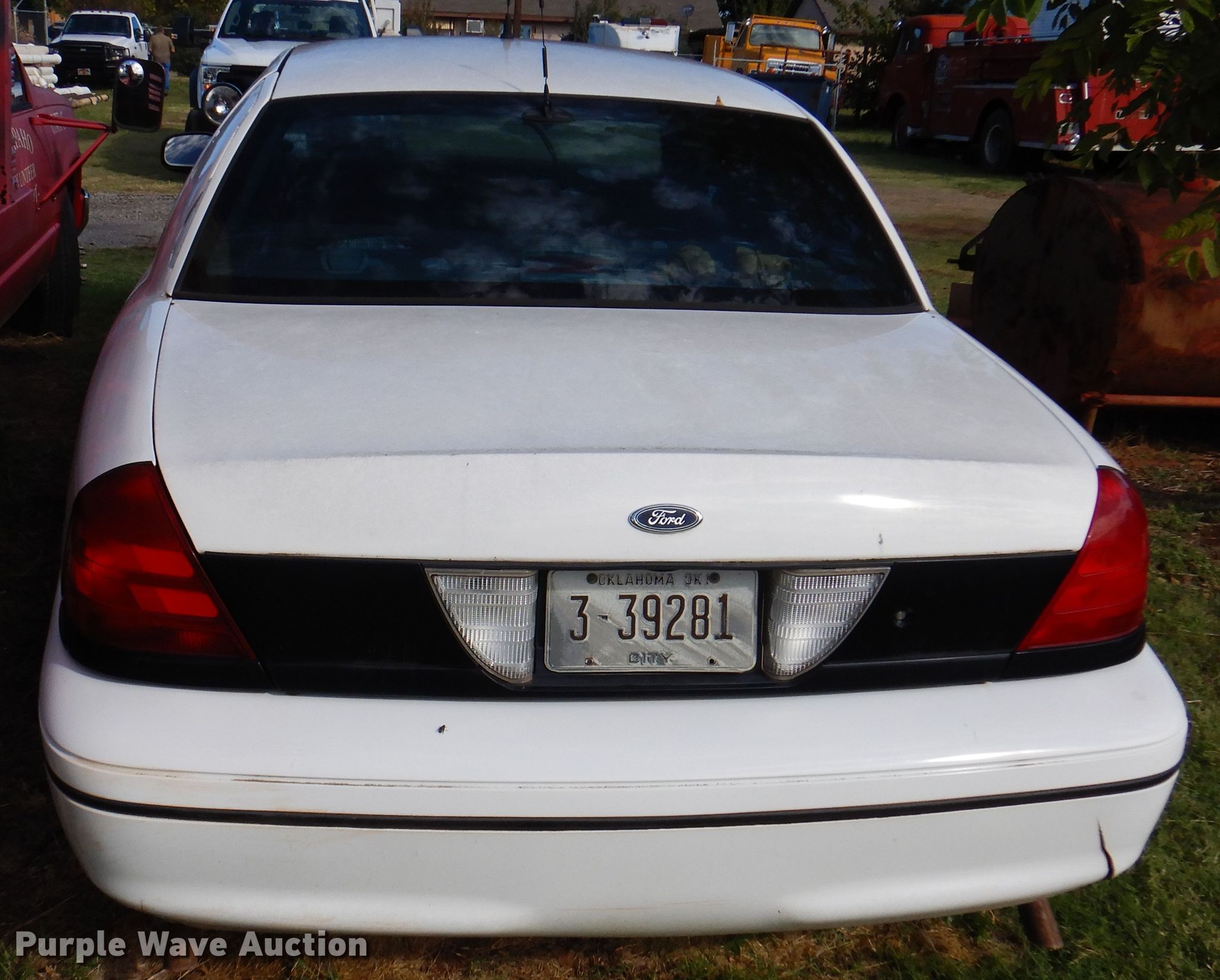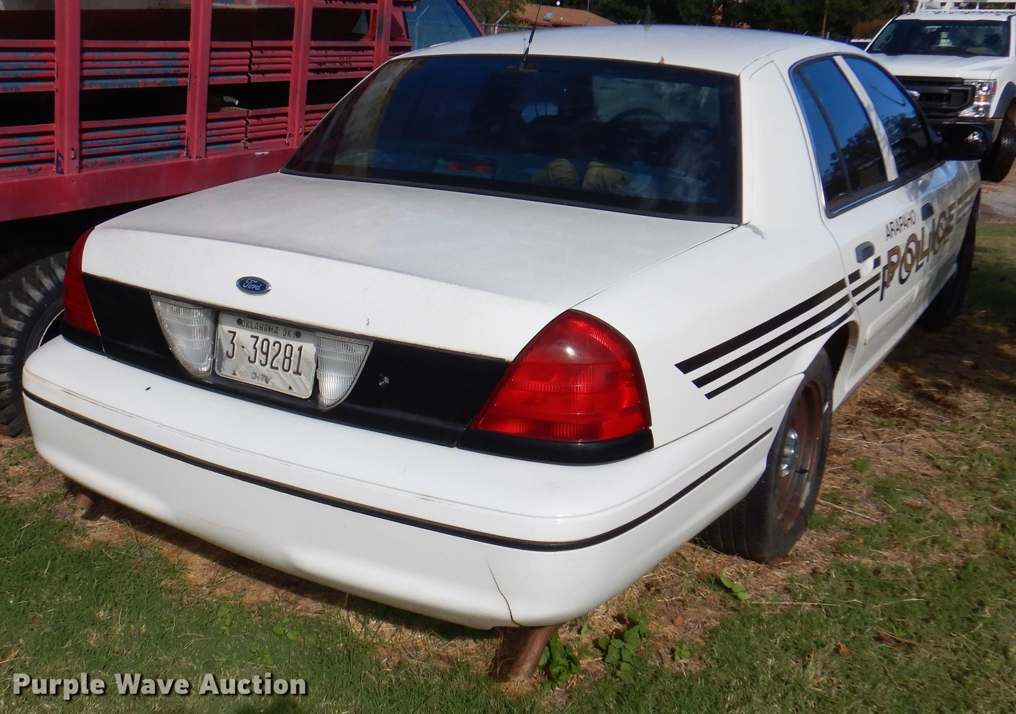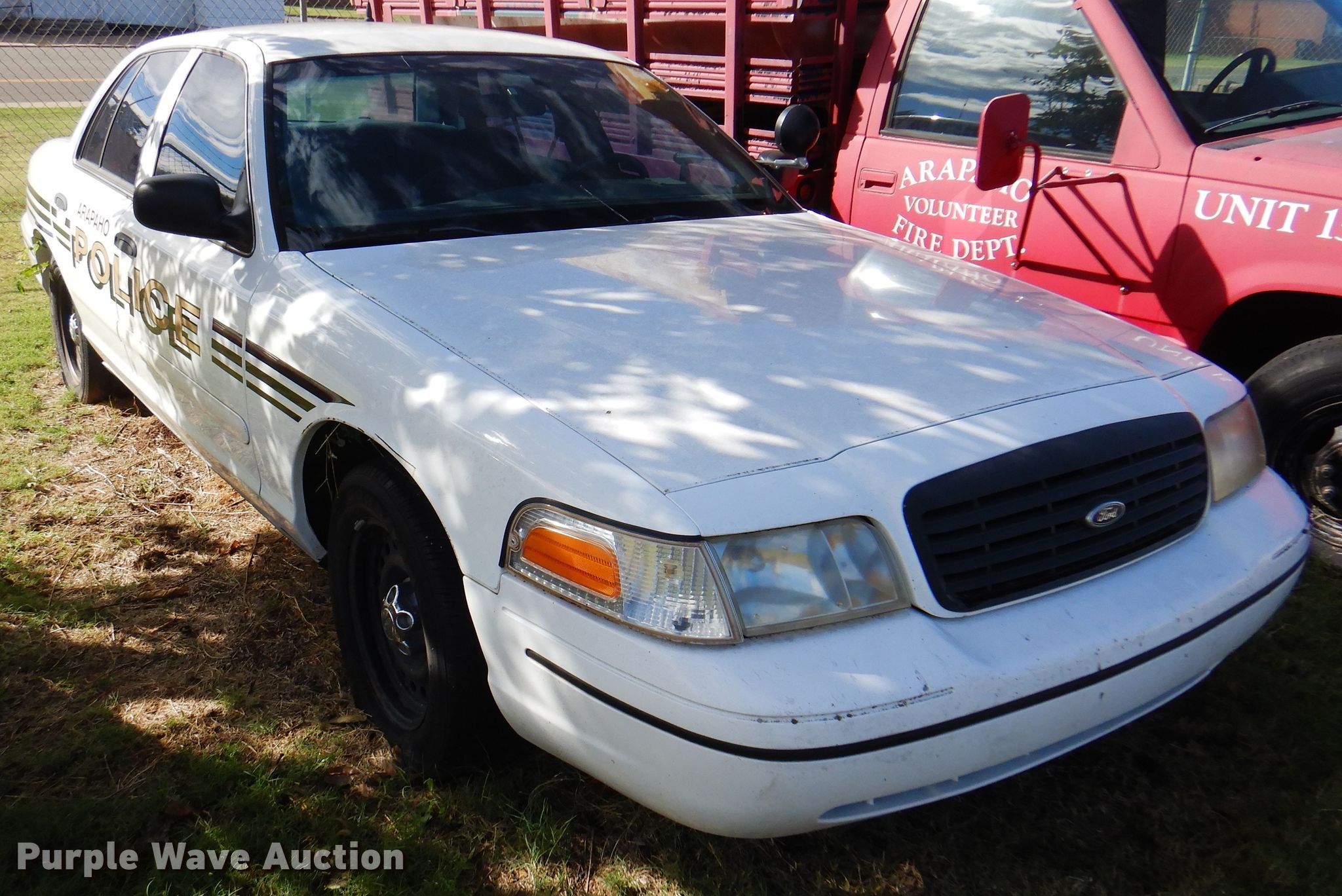 2000 Ford Crown Victoria Police Interceptor. Miles: 111,734 on odometer, VIN: 2FAFP71WXYX173643. Engine Displacement: 4.6L V8 SOHC 16V, Cylinders: 8, Fuel type: Gas. Transmission Automatic. Interior AC, Heat, Power windows, Power locks, Cruise control. Tires Size: 225/60R16. Notes Non-operational unit. Oklahoma title. City of Arapaho. 667 Main St. Arapaho, OK 73620