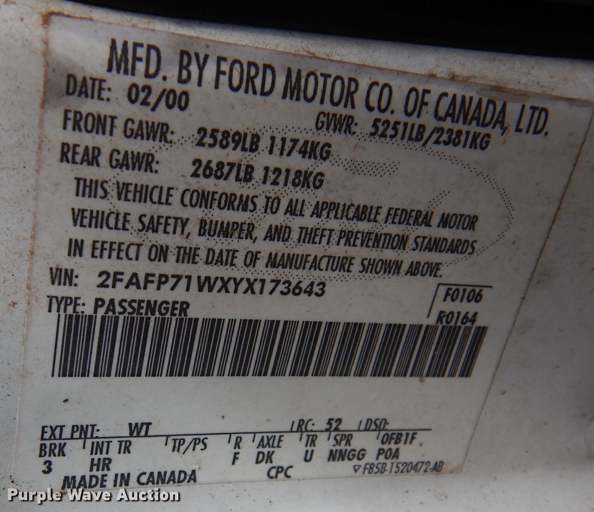 Purple Wave is selling a used Passenger Vehicle in Oklahoma. This item is a 2000 Ford Crown Victoria Police Interceptor with the following: Miles: 111,734 on odometer, VIN: 2FAFP71WXYX173643