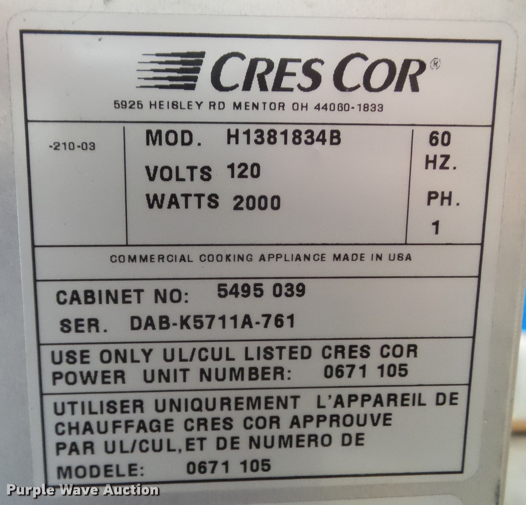 Purple Wave is selling a used Restaurant Equip. in Iowa. This item is a (3) Cres Cor food warmers with the following: 120 volts