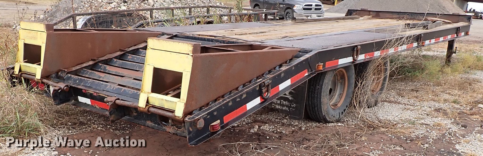 2000 Central PNTL equipment trailer. VIN: 5CNPD2526YC000561. Dimensions Overall: 31' L x 102" W, Deck: 20' L x 102" W, Tail length: 5', Ramps: Manual Length: 57". Operational Deck type: Steel, Wood. Chassis Hitch: Pintle, Landing gear: Dual, Suspension: Spring, Brakes: Electric, Axles: Tandem, GVWR: 24,000 lbs. Tires Size: 235/85R16. Oklahoma title. Title distribution may be delayed up to 30 days from verification of funds. McClain County, OK. 1430 Chandler Rd. Purcell, OK 73080