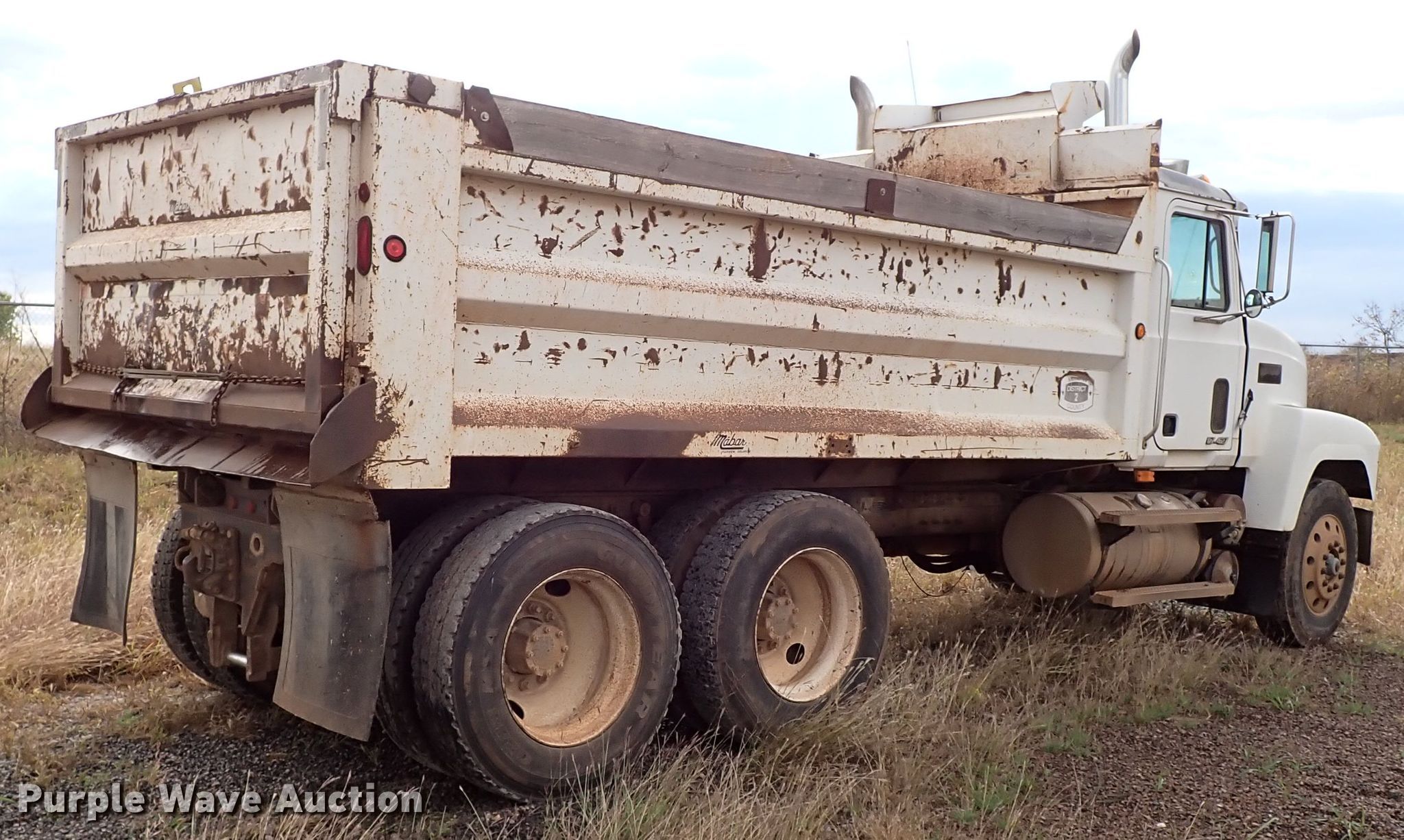 1998 Mack CH613 dump truck. Miles: 394,205 on odometer, Hours: 16,304 on meter, VIN: 1M2AA18Y3WW091705. Engine Mack E7, Serial: 7Y1575, Displacement: 12.0L, Cylinders: 6, Fuel type: Diesel, HP: 427. Transmission Manual, Speed: 9. Chassis Axles: Tandem, Suspension: Spring, Brakes: Air, PTO. Interior AC, Heat. Operational Dump bed 15' L x 96" W, Side height: 40", Side board height: 8", Bed type: Steel, Ram: Single , End gate: Air operated. Tires Size: 11R24.5. Oklahoma title. Title distribution may be delayed up to 30 days from verification of funds. McClain County, OK. 1430 Chandler Rd. Purcell, OK 73080