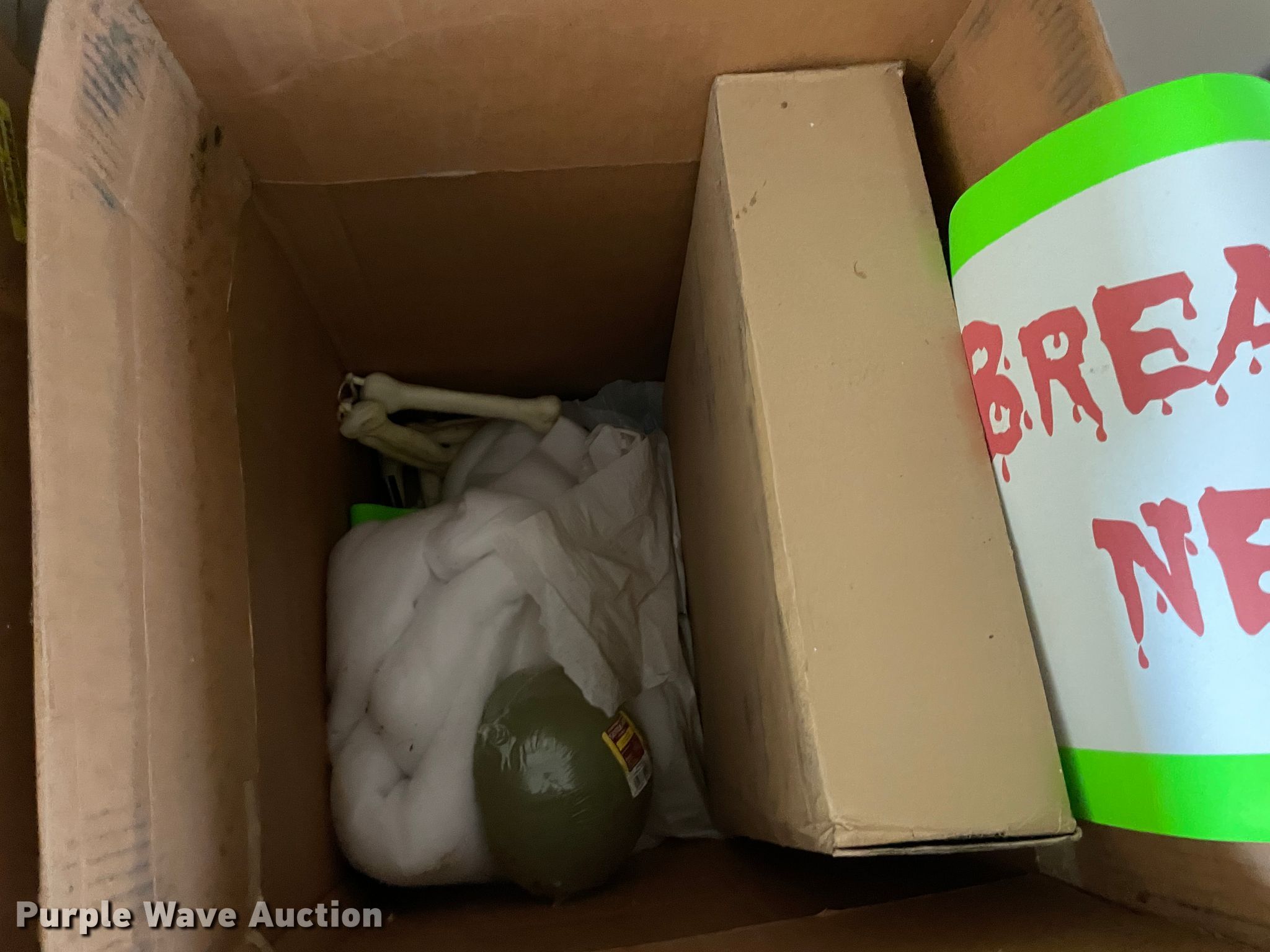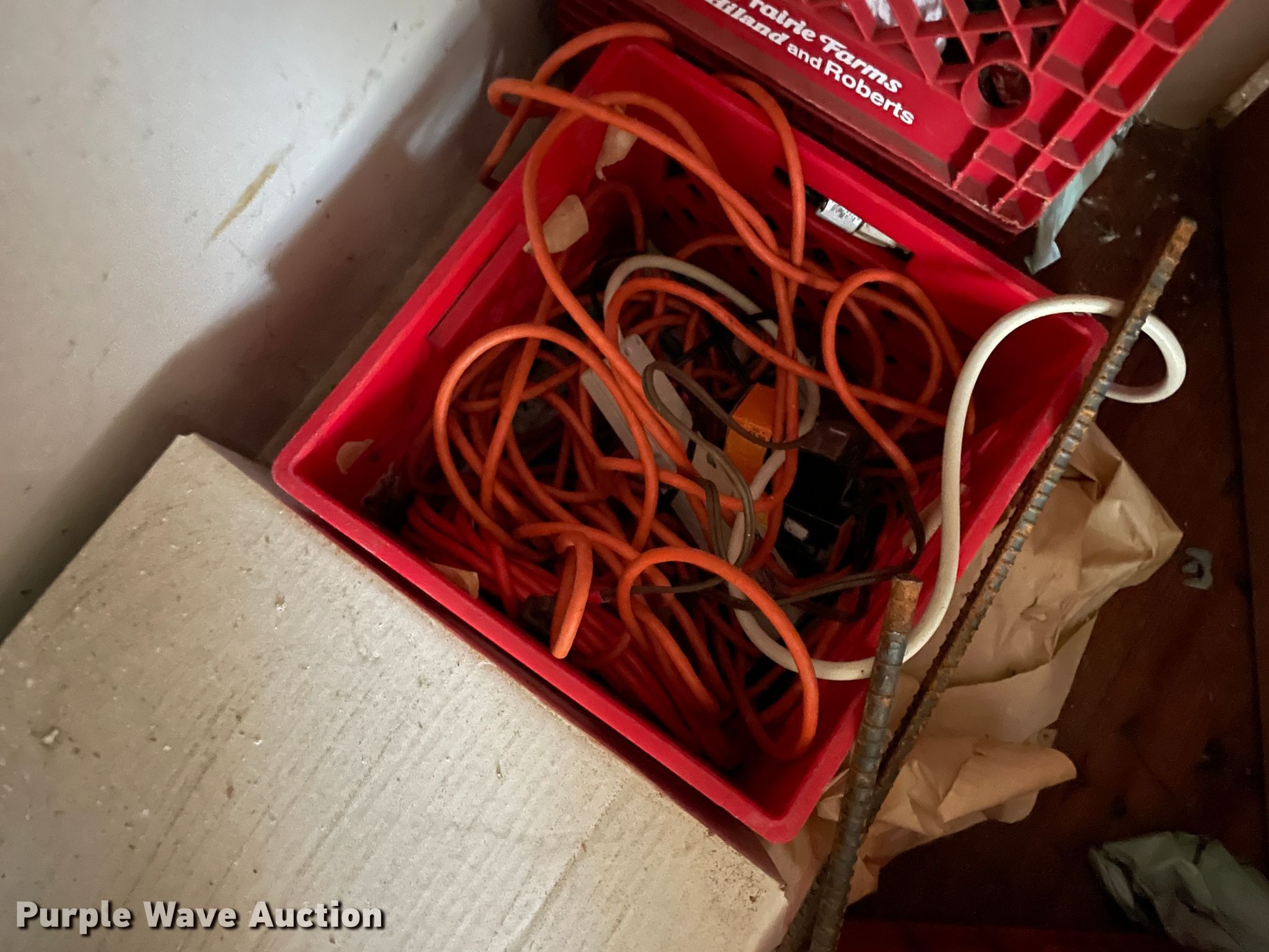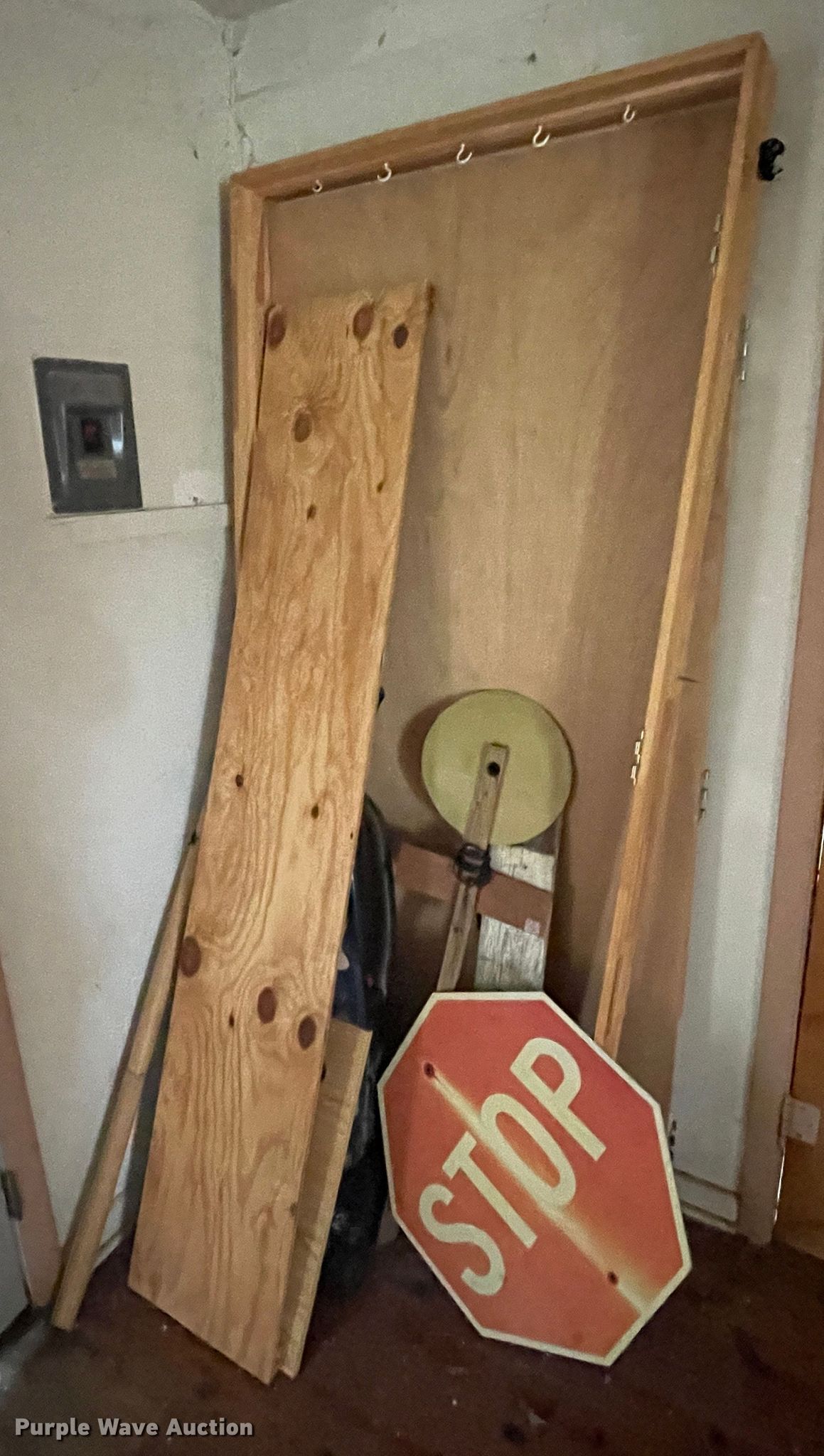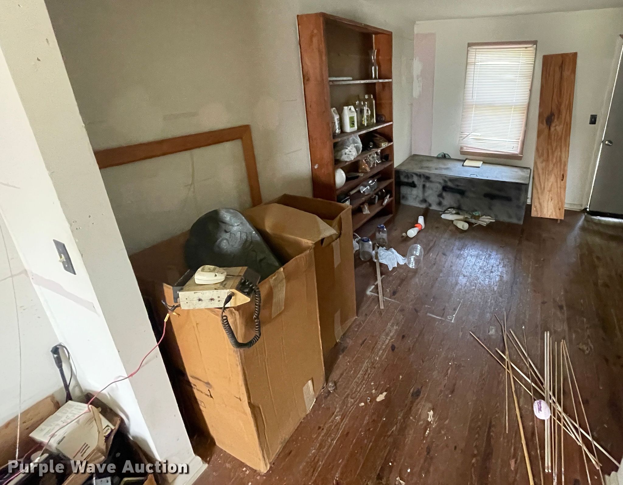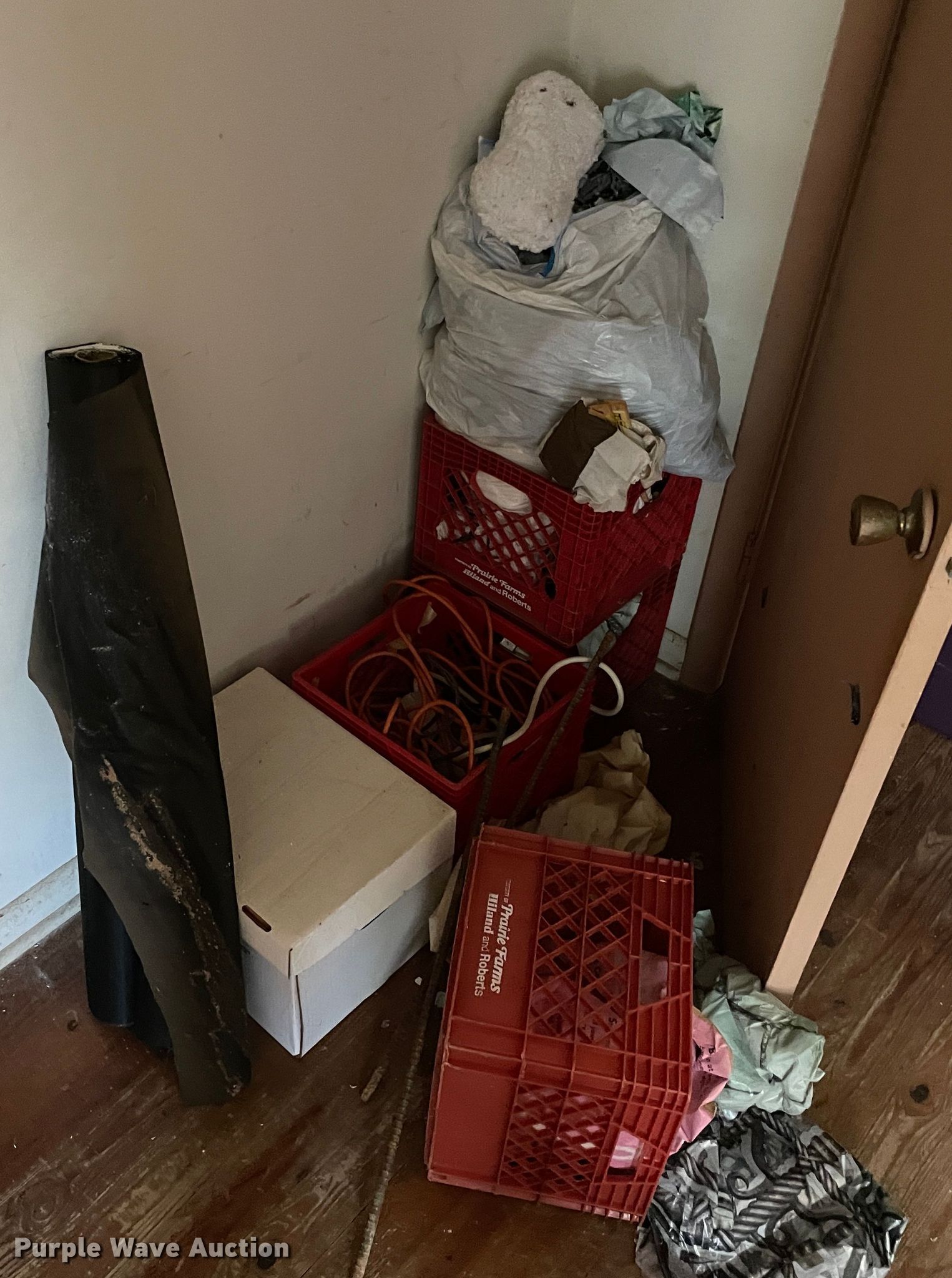 Purple Wave is selling a used Office Supplies and Equip. in Oklahoma. This item is a Office supplies with the following: 7'H wooden shelf, Radio, Halloween decorations, Bissell Powertrak Revolution vacuum, Crates, Extension cords, Volleyball net and more