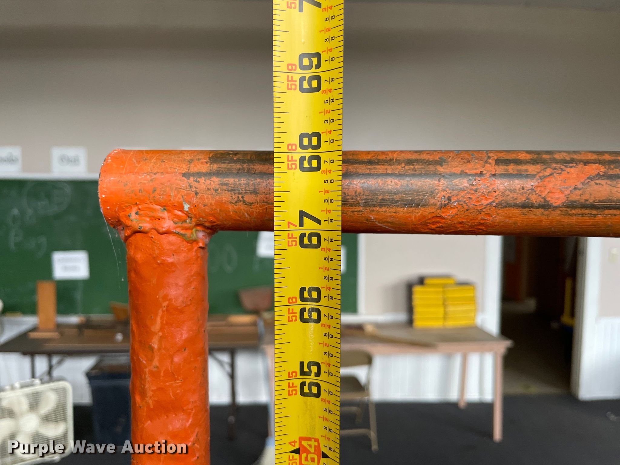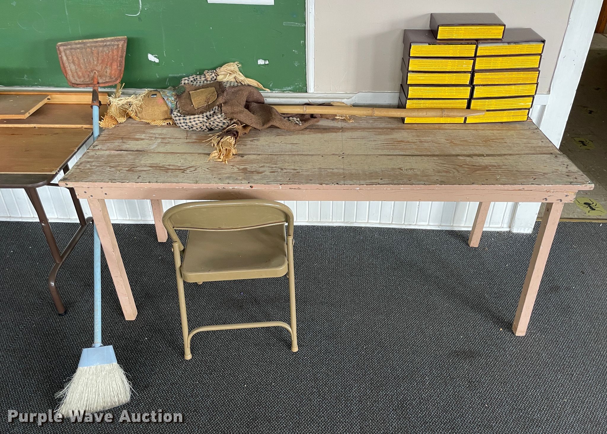Purple Wave is selling a used Office Supplies and Equip. in Oklahoma. This item is a Office supplies with the following: Bissell Powerforce vacuum, Box fan, Folding table, Wooden table, National Geographic magazines, Metal folding chairs, Bench, 47" RCA television, 27" Sony television, 67" x 70" hanging rack, 6'W projector screen, Audio cassette tapes and more
