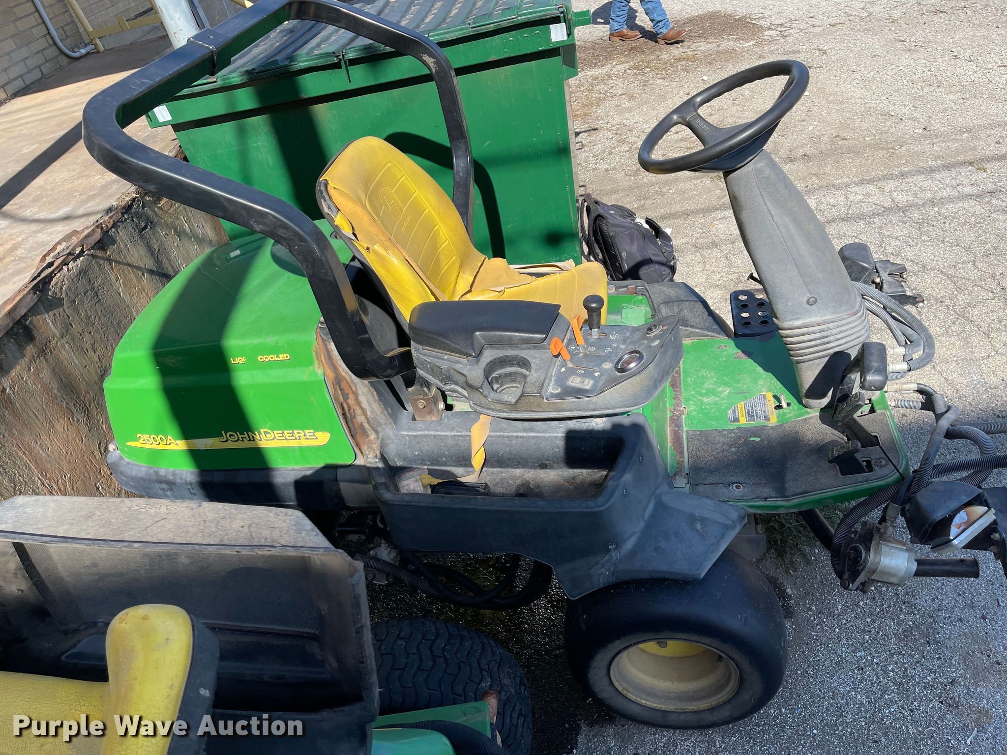 Purple Wave is selling a used Lawn and Garden in Kansas. This item is a John Deere 2500A garden tractor with the following: Cylinders: 2, Fuel type: Gas