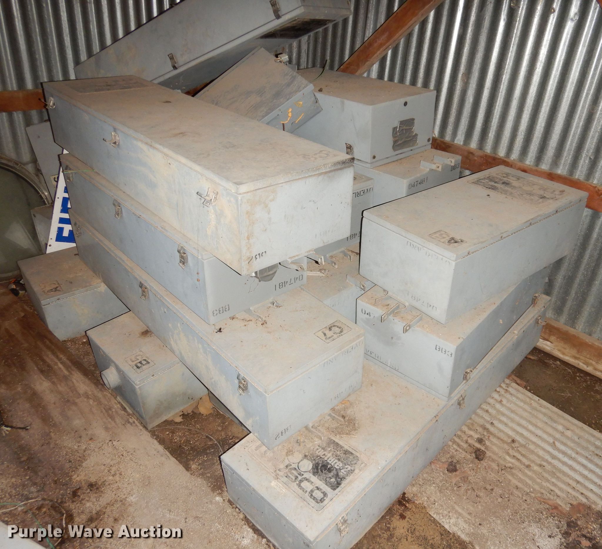 Purple Wave is selling a used Building Materials in Kansas. This item is a Approximately 40 ballfield lights with the following: (10) approx. 65'L poles, Power boxes, Some lights may be damaged, Last used approx. 12 years ago, Unknown operating condition