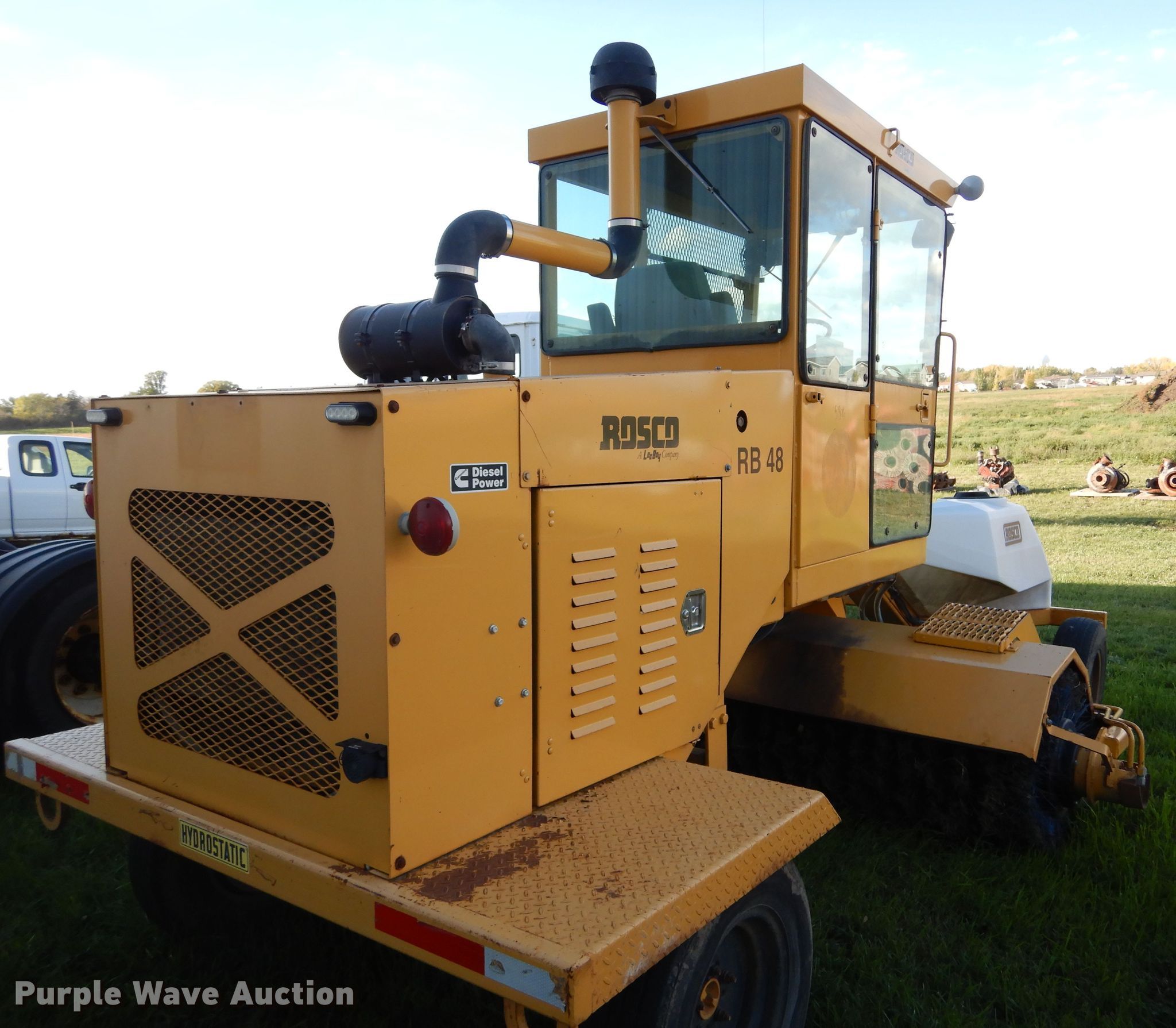 2001 Rosco broom. Hours: 3,273 on meter, Serial: 37725. Engine Cummins, Cylinders: 4, Fuel type: Diesel. Transmission Hydrostatic, Speed: 2. Chassis Brakes: Hydraulic. Operators station AC. Operational Broom Width: 96", Water spray system. Tires Size: 117/112L. Notes Hydraulic leak, Unknown operating condition. South Dakota title. City of Aberdeen, SD. Aberdeen, SD 57401