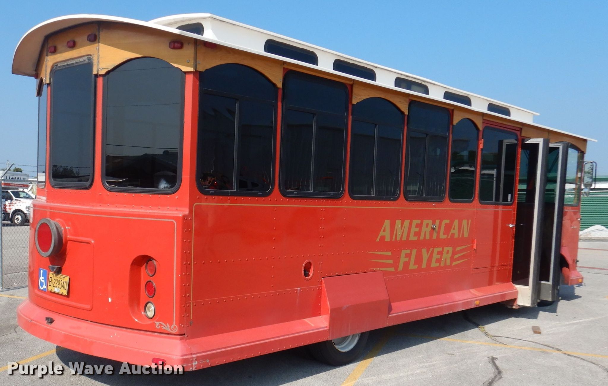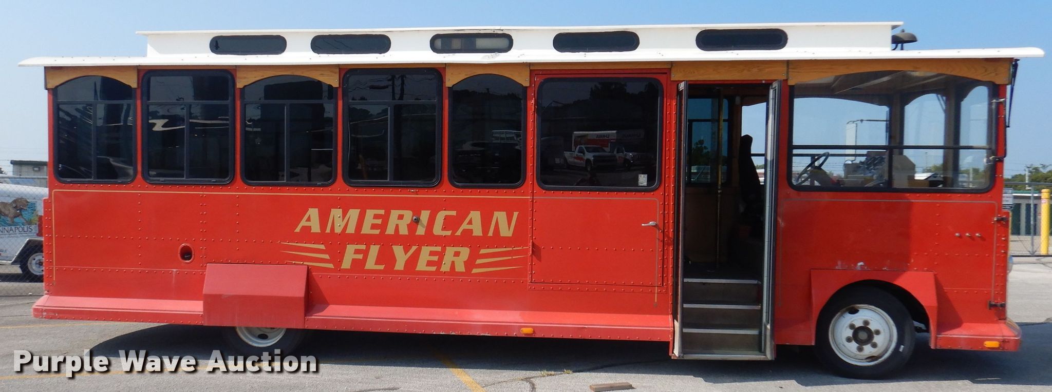 This 2001 Freightliner MB American Flyer trolley will sell to the highest bidder regardless of price.