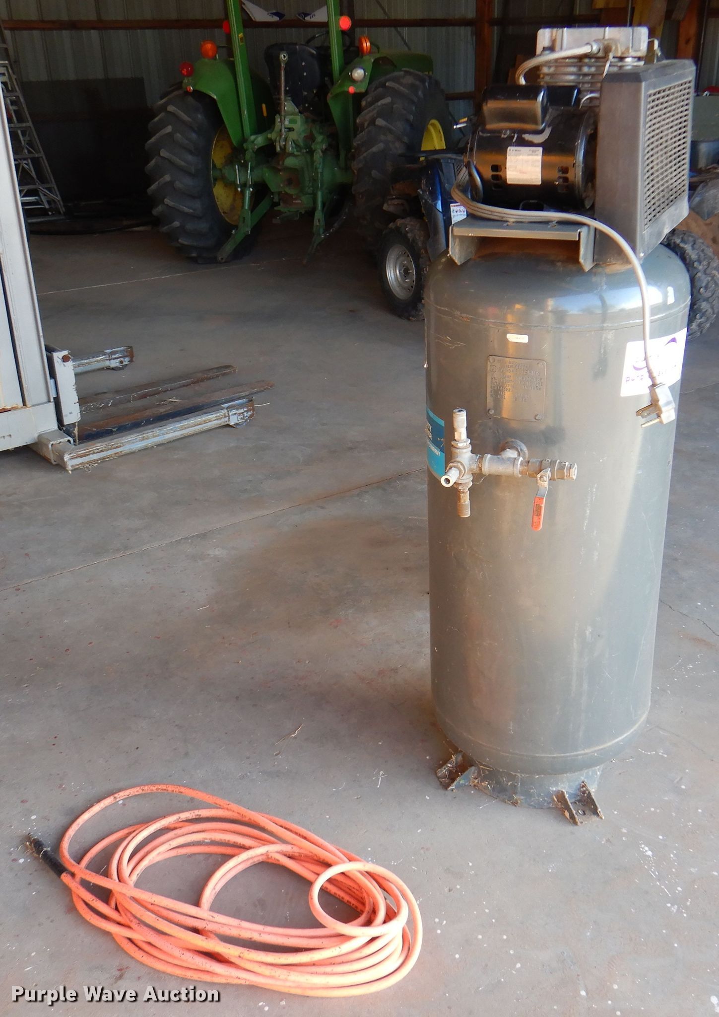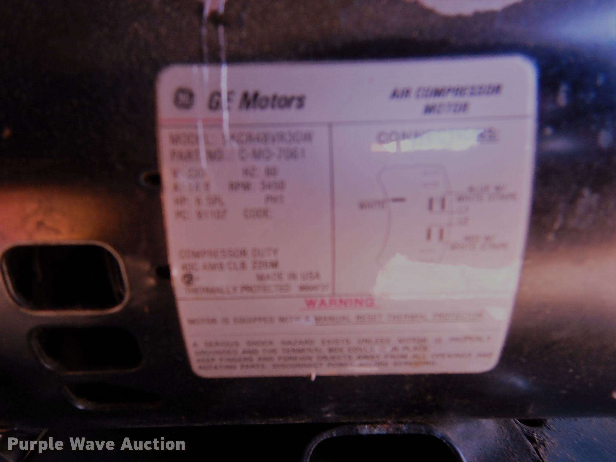 Purple Wave is selling a used Air Compressor in Oklahoma. This item is a DeVilbiss Pro 4000 air compressor with the following: GE Motors, HP: 6, Phase: Single