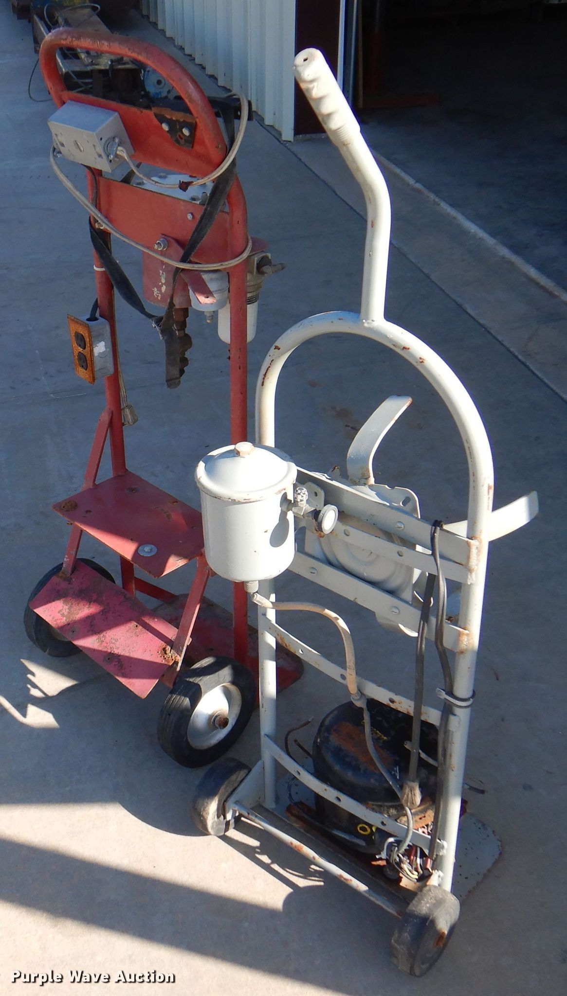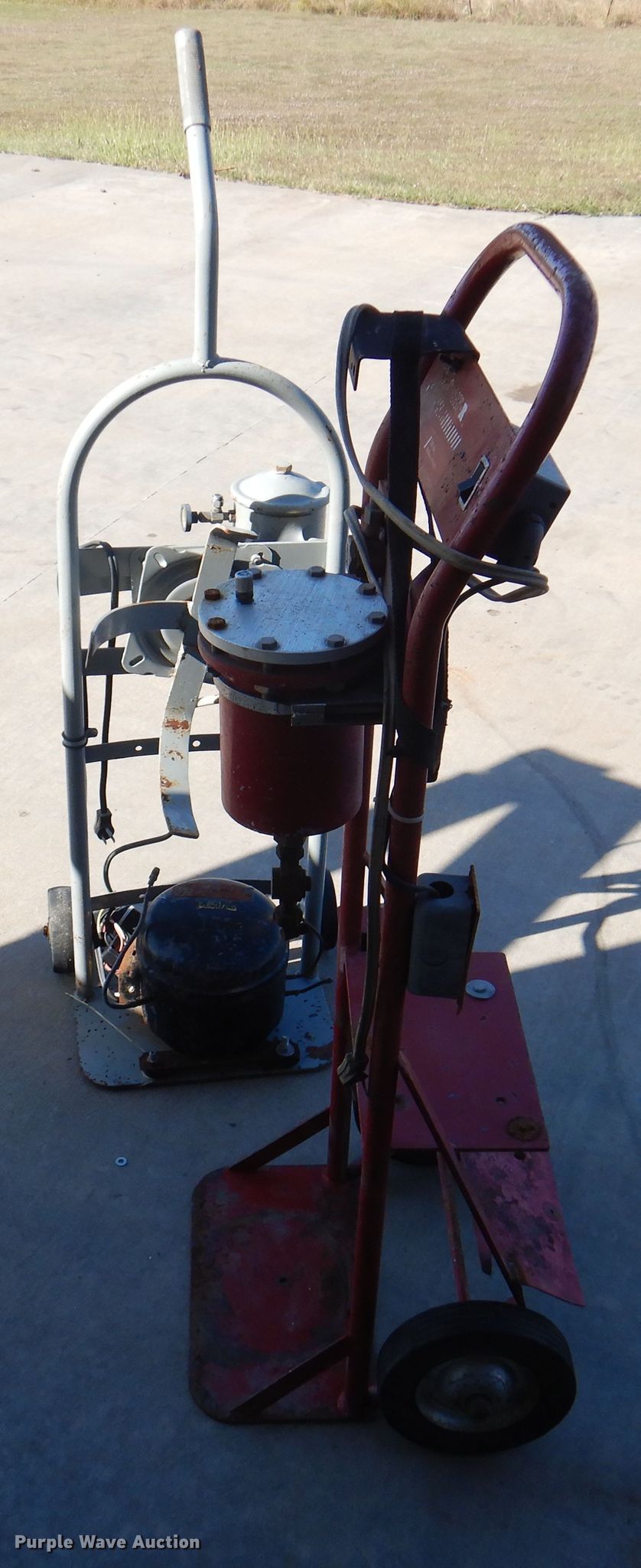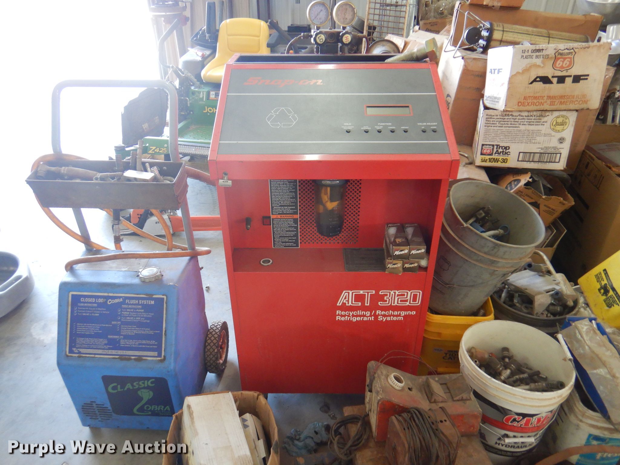 Purple Wave is selling a used Tools in Oklahoma. This item is a Tools with the following: Snap-on Act 3120 refrigerant recycler, Cobra closed loop flush system, AC clutches, Crimps, Fittings, Wire plates, Dial-a-charge cylinder, Cracked, Vent covers, Kent Moore purge diagnostic station, (4) AC units, Goodman, Brown SB24SA-4A, Coleman, Copeland, (2) recovery units, Unknown operating condition of items