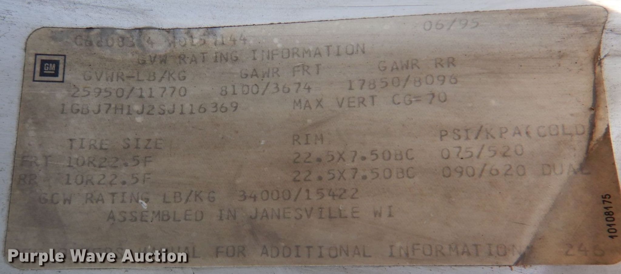 • VIN: 1GBJ7H1J2SJ116369