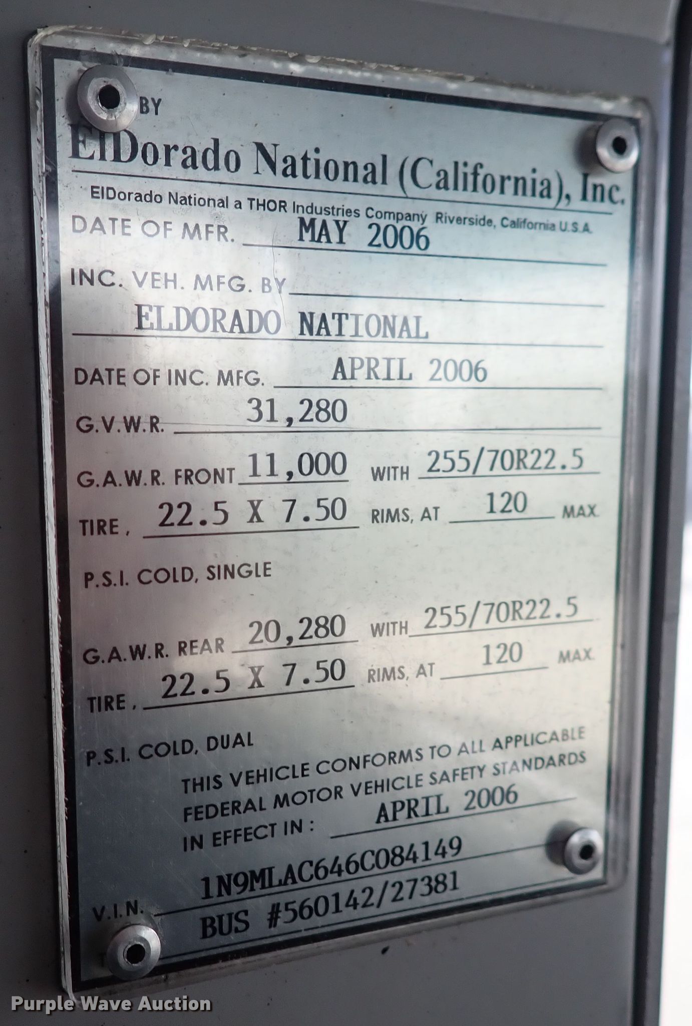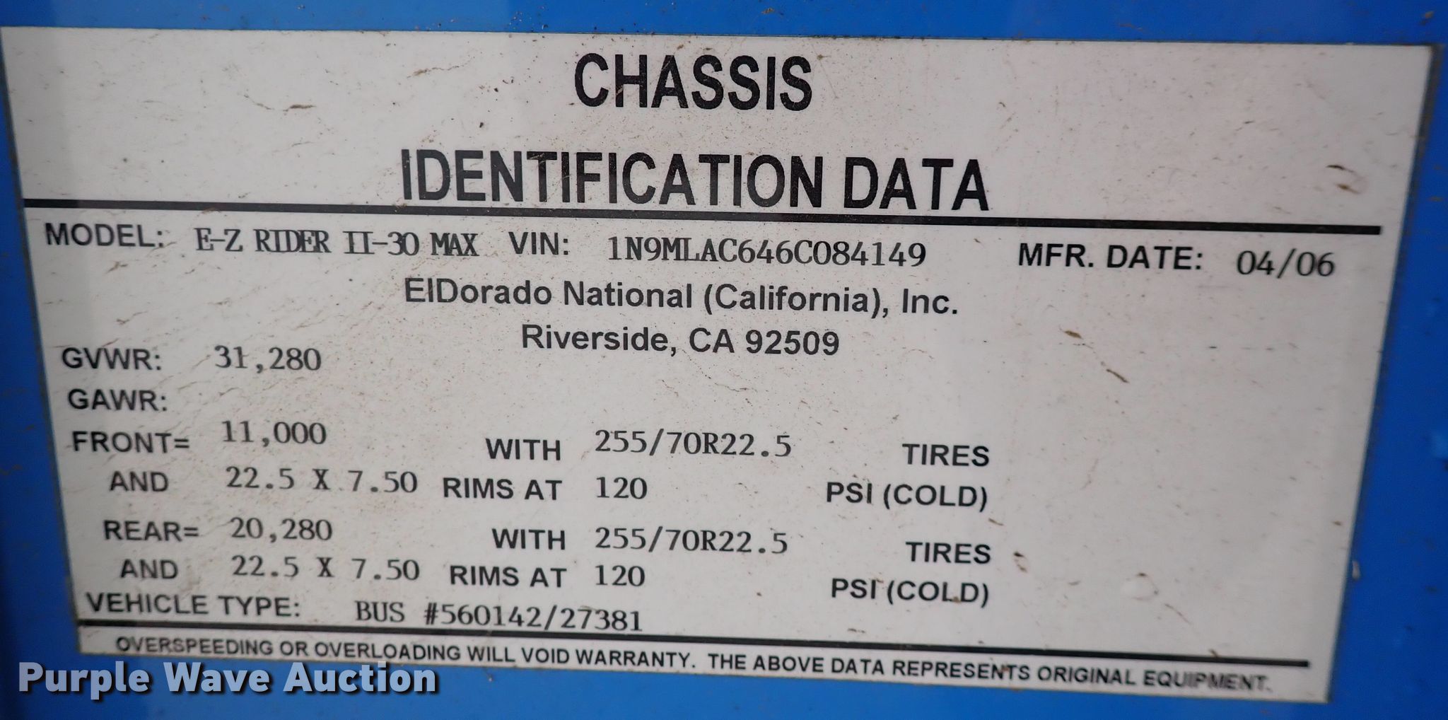 Purple Wave is selling a used Bus in Kansas. This item is a 2006 El Dorado E-Z Rider II transit bus with the following: Miles: 191,485 on odometer, VIN: 1N9MLAC646C084149