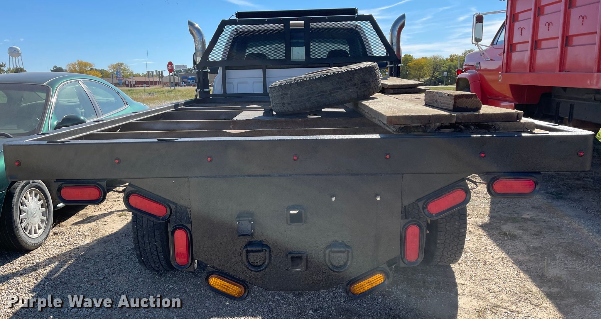 2002 Dodge Ram 3500 flatbed pickup truck. Miles: 449,348 on odometer, VIN: 3B6MC36C32M316394. Engine Displacement: 5.9L L6 OHV 24V, Cylinders: 6, Fuel type: Diesel. Transmission Manual, Speed: 6. Interior AC, Heat, Power windows, Power locks, Cruise control. Operational Flatbed 12' L x 94" W, Hitch: Gooseneck. Tires Size: 235/85R16. Notes Windshield chipped or cracked. Kansas title. 1892 E Hwy 18. Lincoln, KS 67455