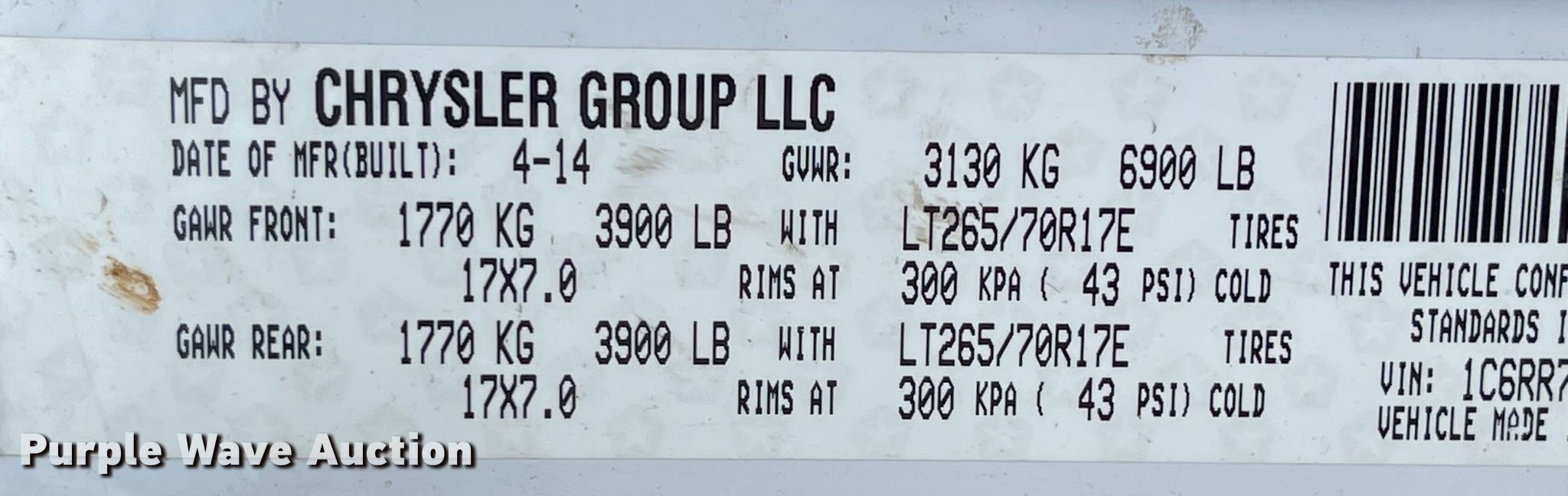 Purple Wave is selling a used 1/2 Ton Pickup or Van in Pennsylvania. This item is a 2014 Dodge Ram 1500 Crew Cab pickup truck with the following: Miles: 156,848 on odometer, VIN: 1C6RR7ST0ES329748