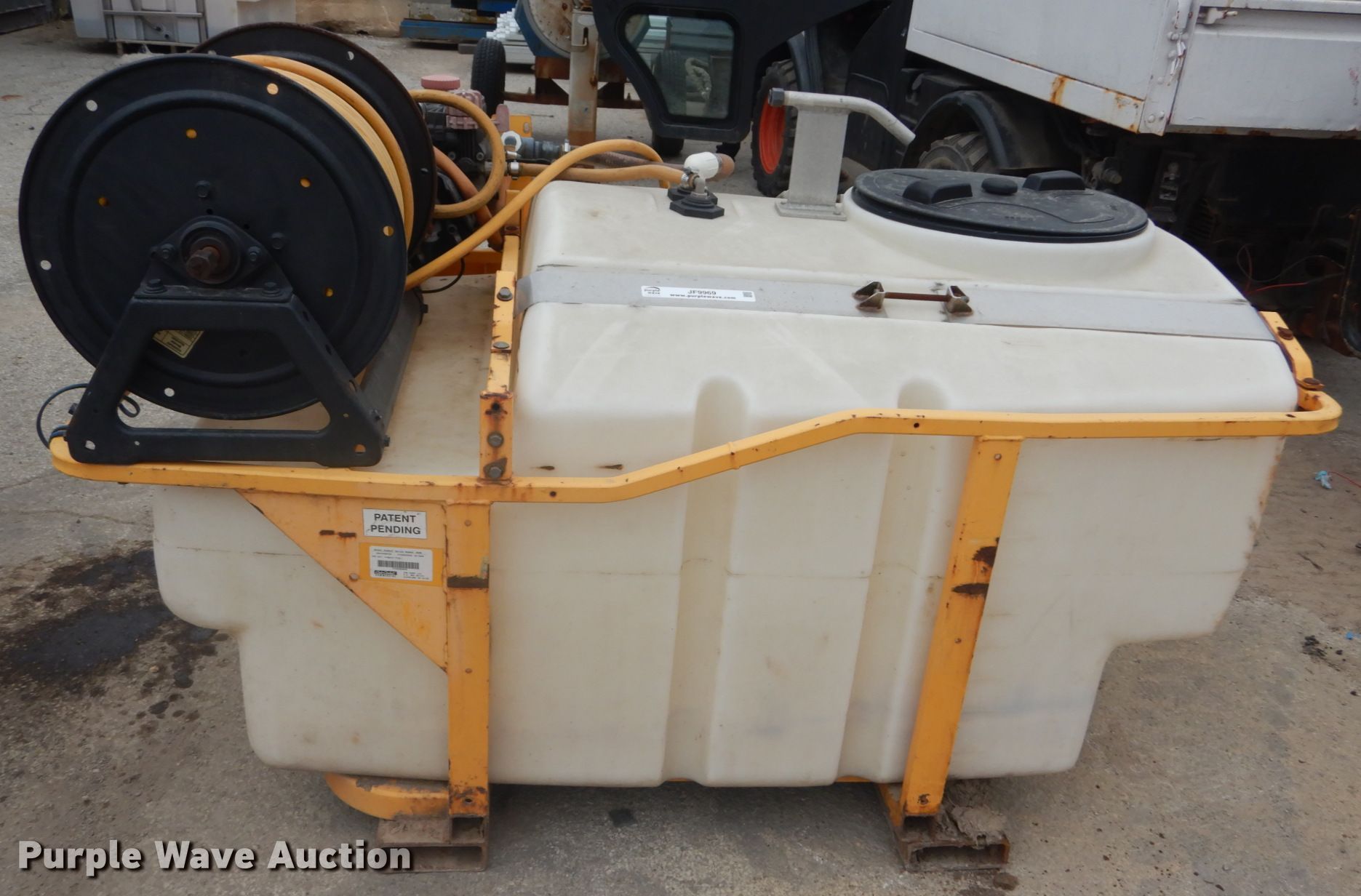 2009 Cub Cadet 56A703QR750 sprayer. Serial: 1F239Z60002, Capacity: 200 gallons, Kawasaki gas engine 5.5 HP, Skid mounted , Pump, Hose reel, 3/4" hose. Bluegrass Landscape & Snow Management. Bridgeton, MO 63044