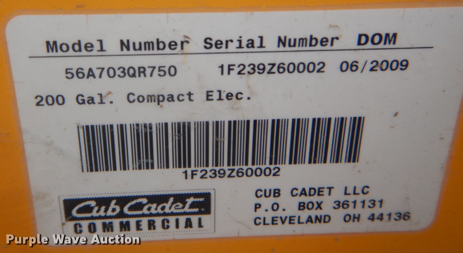 2009 Cub Cadet 56A703QR750 sprayer has sold in Bridgeton, Missouri for $412.50. Item JF9969 sold on December 1st, 2021.