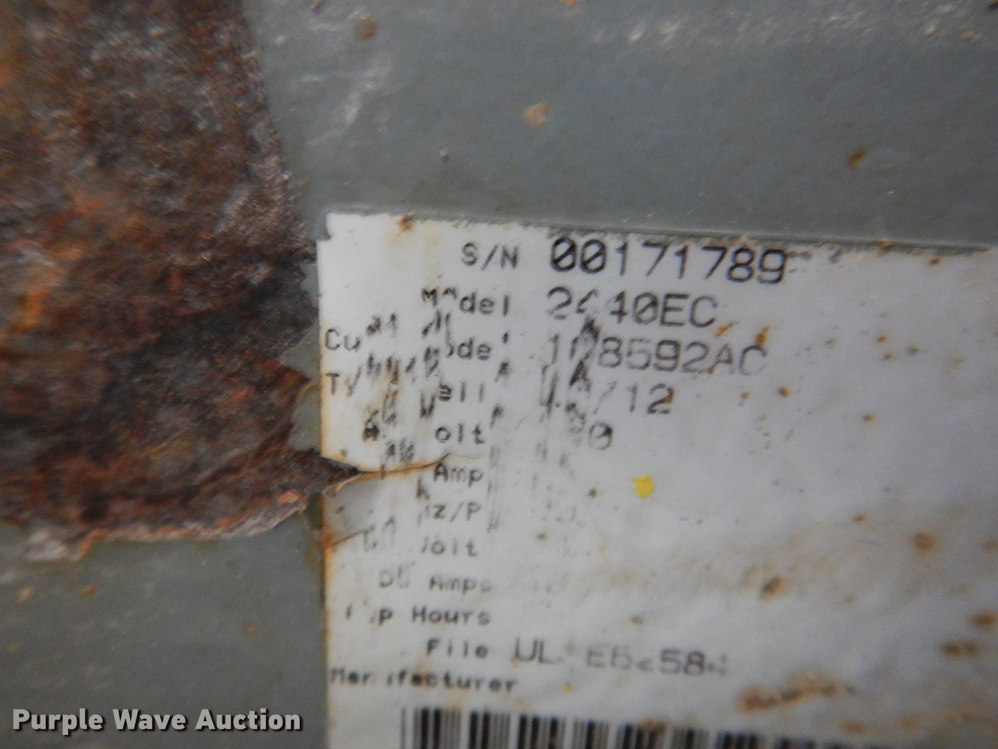 Sky Jack 3220 scissor lift. Hours: 681 on meter, Serial: 607146. Electric Motor Scott 4BD-02273 Serial: 454576, Volts: 24. Operational Maximum lift capacity: 800 lbs, Maximum lift height: 20', Platform: 120" L x 26" W, Controls: Platform, Platform extensions: Manual, Travel speed: 2 mph. Tires Tire size: 4x8x3.75, Solid. Notes Non-operational unit. AgriVision Equipment Group. 710 E Taylor St. Creston, IA 50801