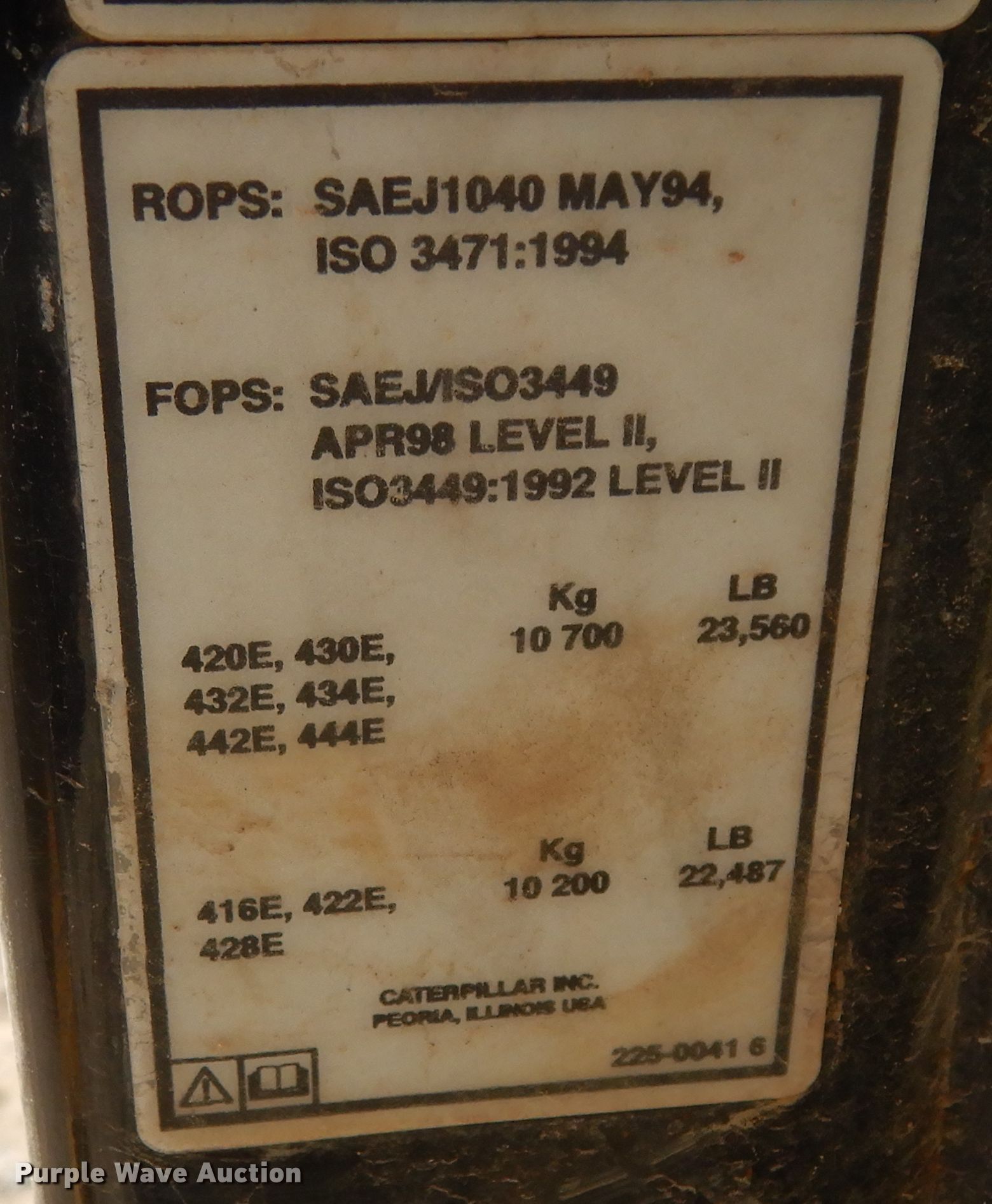 2006 Caterpillar 420E IT backhoe. Hours: 5,126 on meter, Serial: CAT0420EPKMW00653, Unit #: E-107. Engine Caterpillar C4.4, Cylinders: 4, Fuel type: Diesel. Transmission Shuttle shift, 4F - 4R. Chassis Four wheel drive. Operators station Enclosed cab, Backhoe controls: Pilot control, Pattern changer. Operational Loader IT Carrier, Quick coupler: Hydraulic, Auxiliary hydraulics, Bucket leveler, Width: 94", Cutting edge: Bolt-on, Backhoe Extendable stick, Thumb: Hydraulic, Auxiliary hydraulics, Bucket Width: 12", Teeth: 3.. Tires Front: 12.5/80-18MS, Rear: 19.5L-24. ROC Service. 191 Energy Way. Bridgeport, TX 76426