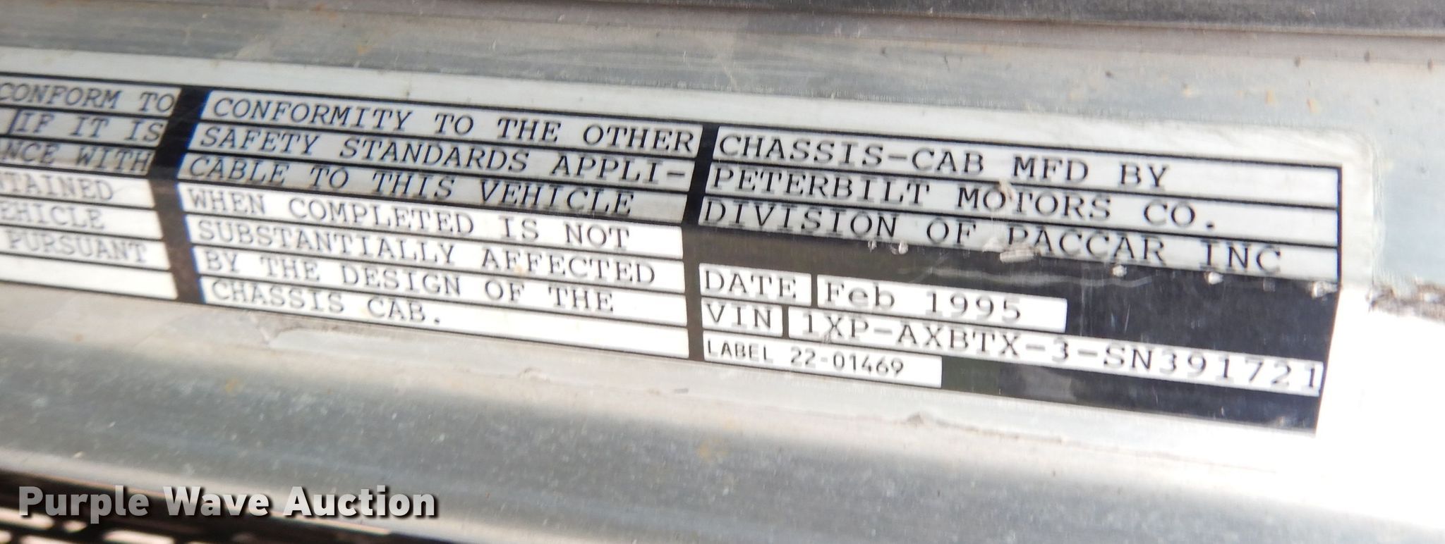 Purple Wave is selling a used Construction Dump Truck in Kansas. This item is a 1995 Peterbilt 357 dump truck with the following: Miles: 150,591 on odometer, Hours: 2,999 on meter, Miles and hours may vary, unit still in use, VIN: 1XPAXBTX3SN391721