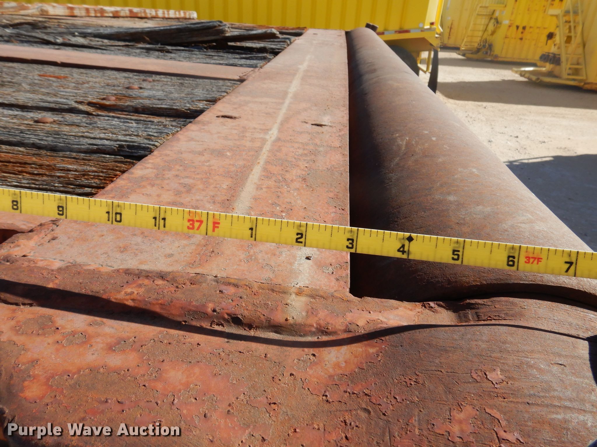 1971 Hobbs oilfield trailer. VIN: FHM762205, Unit #: T-029. Dimensions Overall: 38' 7" L x 96" W, Deck: 37' 4" L x 91" W, Deck height: 58". Operational Deck type: Wood, Rolling tailboard. Chassis Landing gear: Dual, Suspension: Spring, Brakes: Air, Axles: Tandem. Tires Steel wheels, Size: 11R24.5. Oklahoma title. J & L Oilfield Services. 300 E. Airport Rd. Shattuck, OK 73858