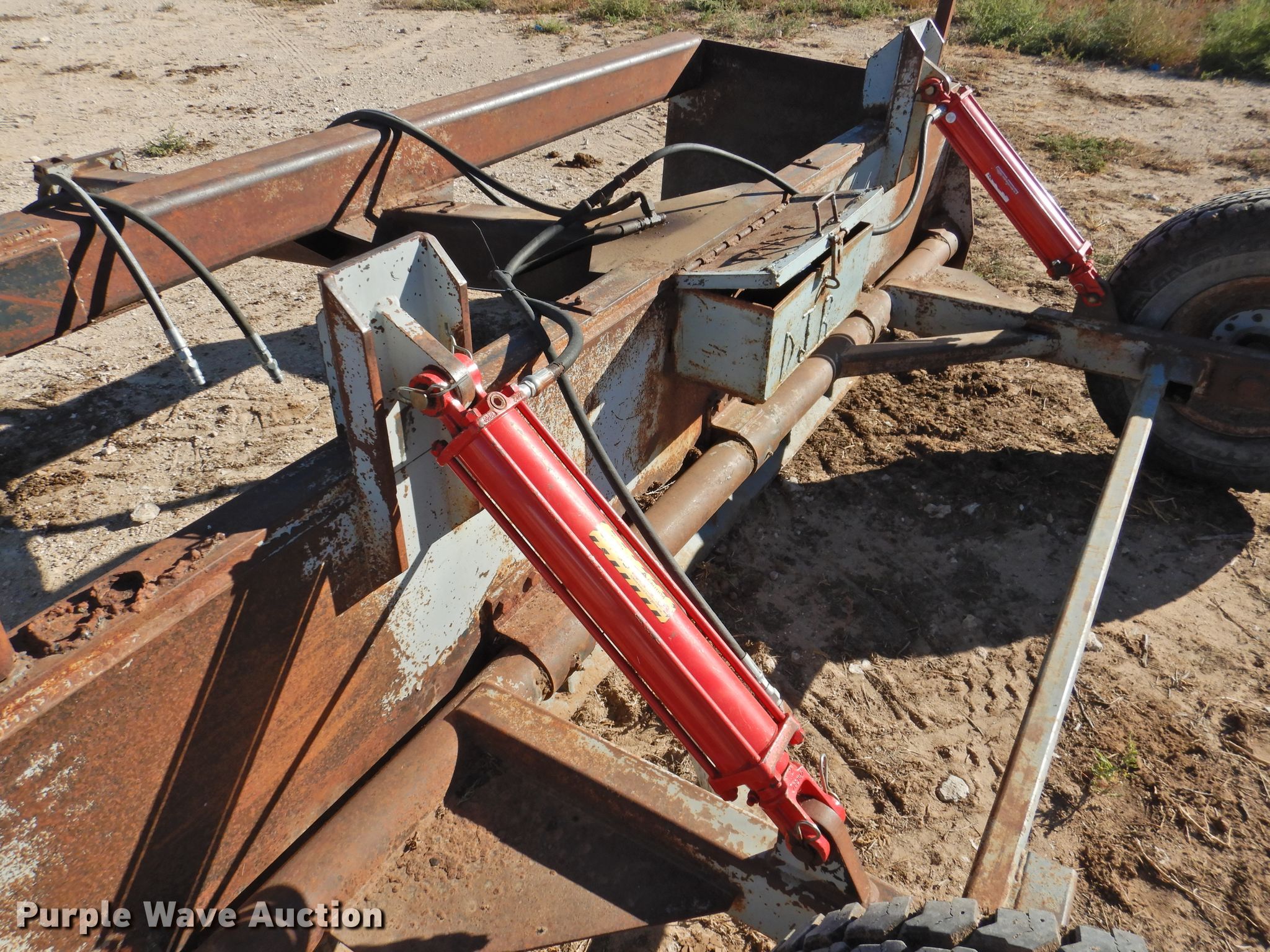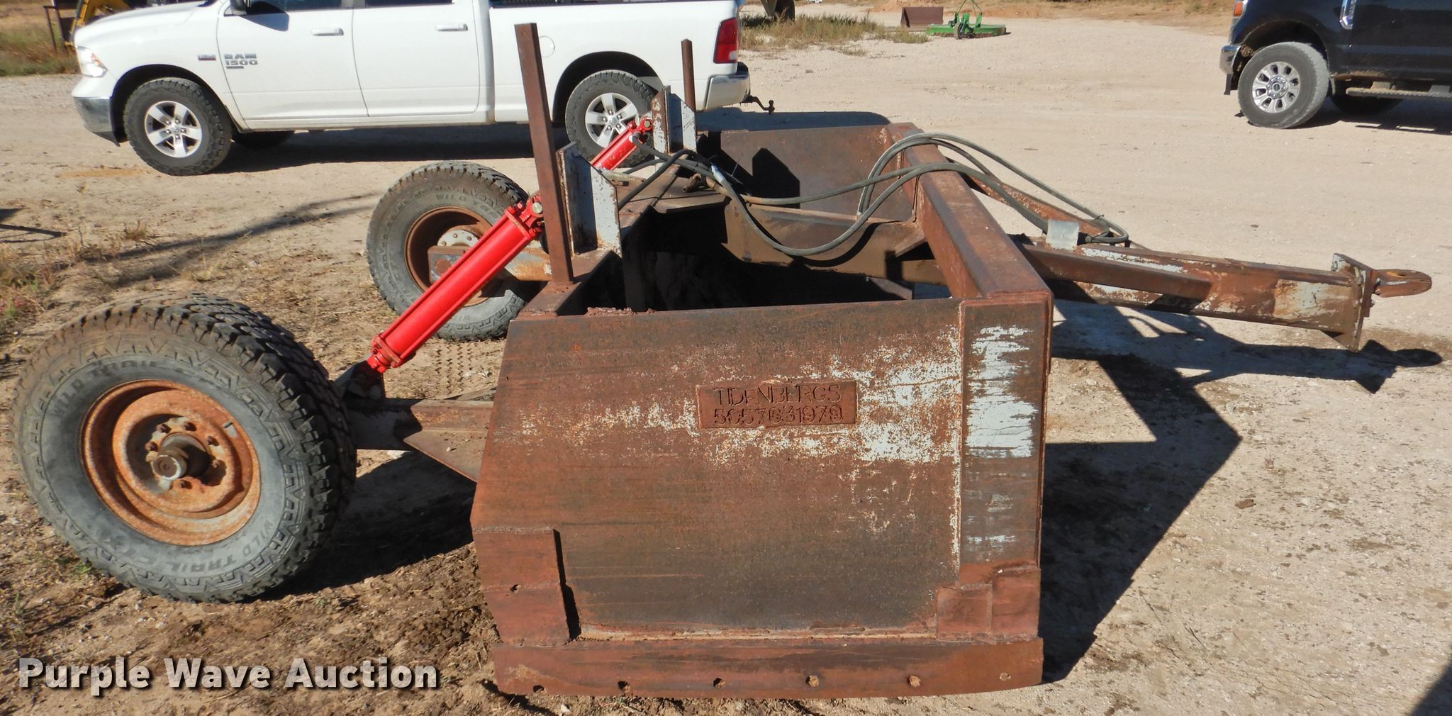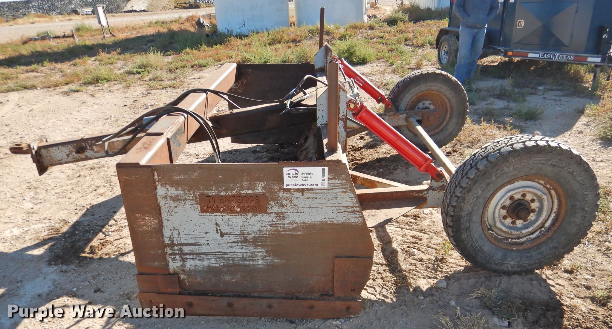 Purple Wave is selling a used Pull Type Scraper in Texas. This item is a Tidenbergs box blade with the following: Width: 10', Reversible cutting edges, Tire Size: 265/75R16, Hydraulic hose missing