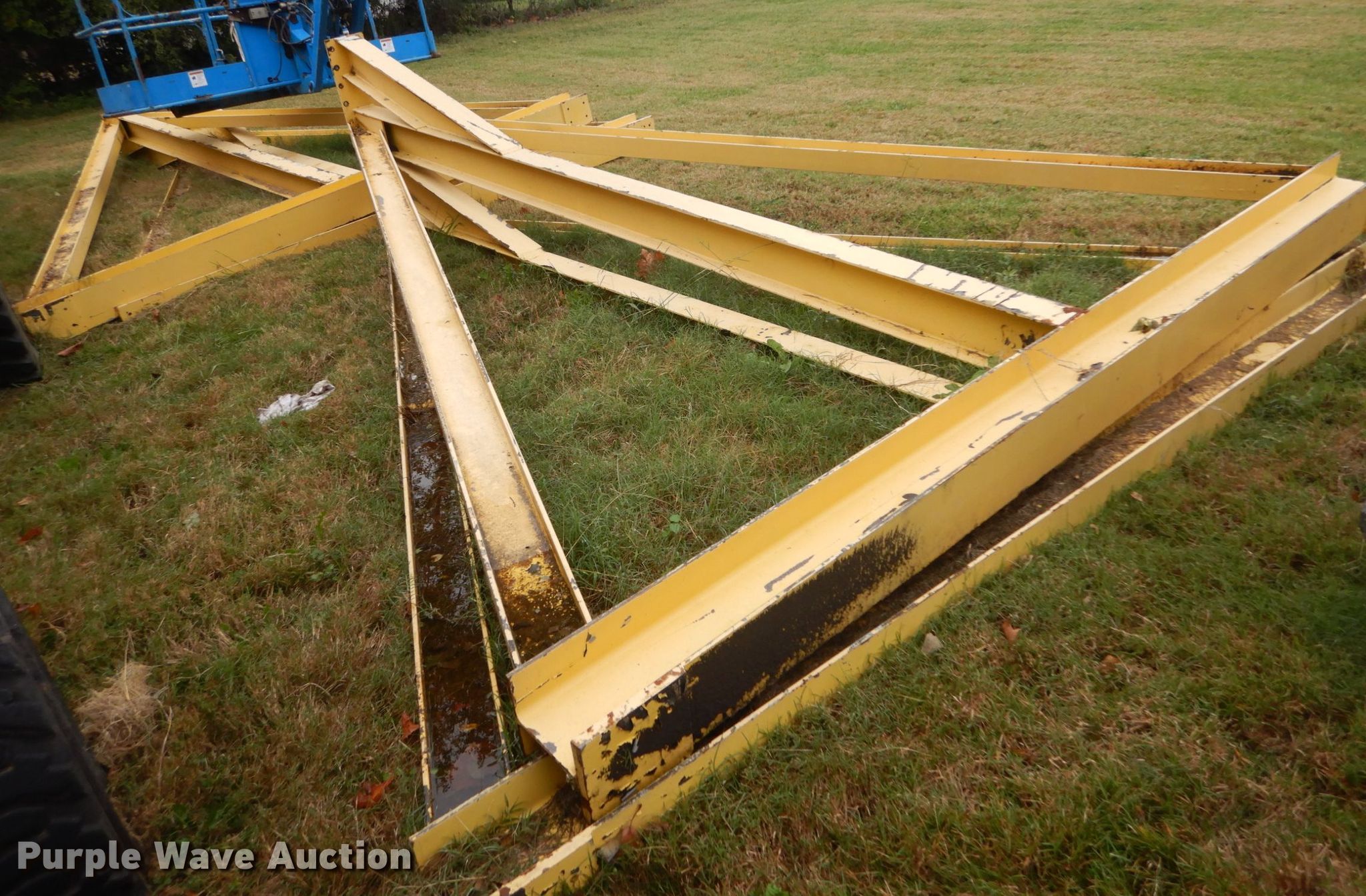 Purple Wave is selling a used Overhead or Straddle Crane in Missouri. This item is a Gantry crane with the following: 15' 4" H x 12' W, 20' crane beam, Capacity: 3 tons, Four caster wheels included