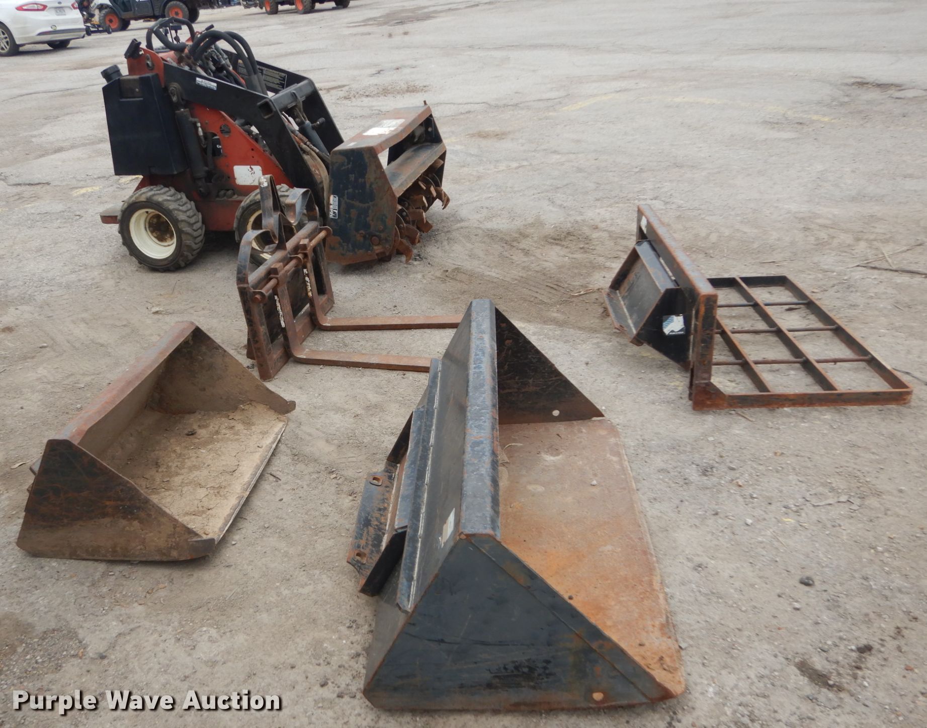 Toro Dingo compact utility loader. Unknown hours on meter. Engine Kohler, Cylinders: 2, Fuel type: Gas, HP: 20.5. Transmission Hydrostatic. Operators station Bucket control: Hand. Operational Auxiliary hydraulics, Quick coupler: Manual, Forks Length: 32", Bucket Width: 46", Bucket Width: 42", Bucket Width: 32", Debris bucket Width: 48", Rototiller Width: 42". Tires Front: 215/50-10. Bluegrass Landscape & Snow Management. Bridgeton, MO 63044