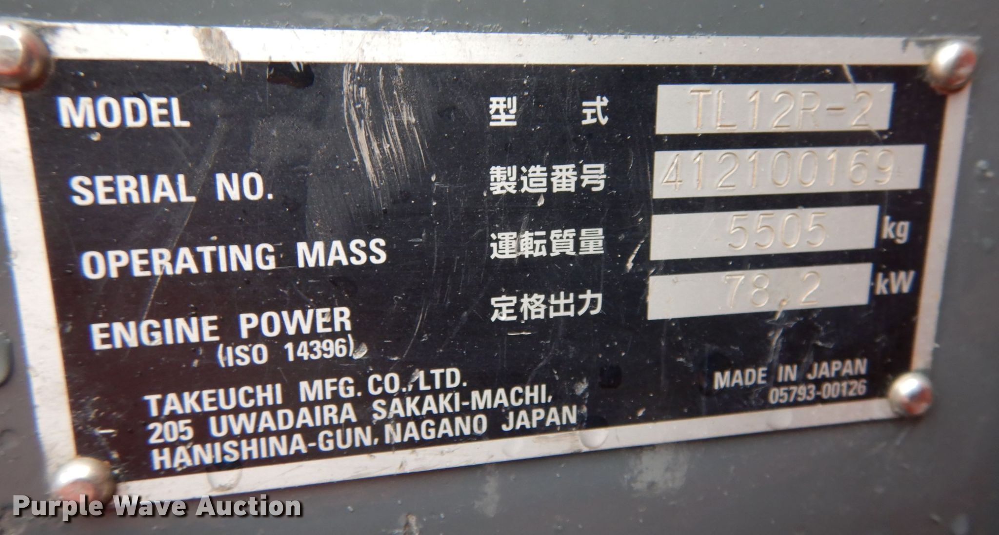 Purple Wave is selling a used Tracked Skid Steer Loader in Missouri. This item is a 2017 Takeuchi TL12R2 tracked skid steer loader with the following: Hours: 1,219 on meter, Serial: 412100169