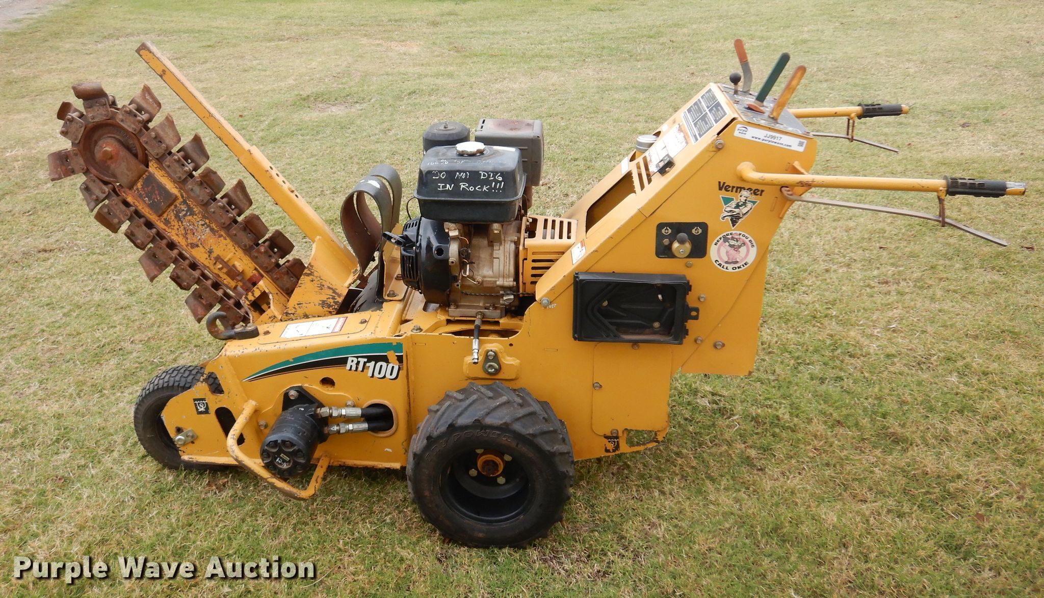 Purple Wave is selling a used Trencher or Rock Saw in Oklahoma. This item is a Vermeer RT100 trencher with the following: Hours: Unknown, Serial: 1VRX051E361002303