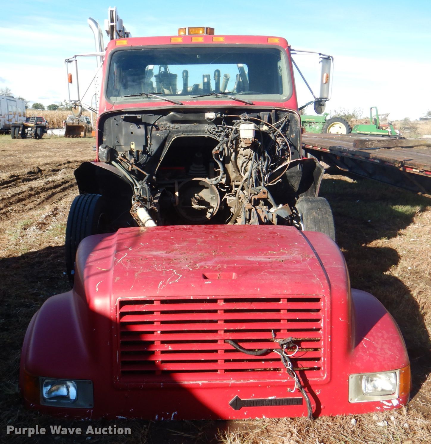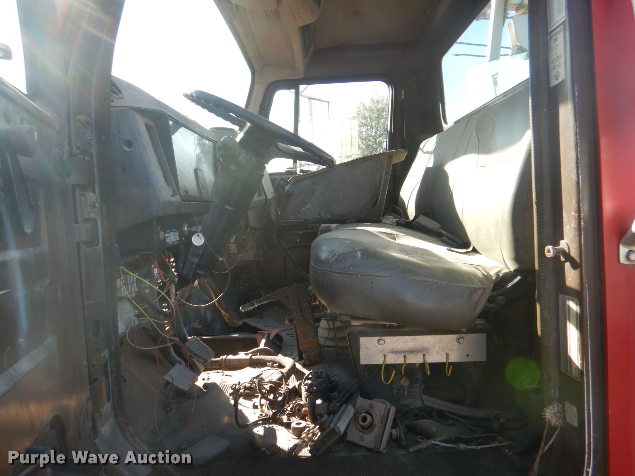 1995 International 4700 utility / service truck. Miles: 379,258 on odometer, VIN: 1HTSCAAM8SH674251. Engine No engine. Transmission Manual, Speed: 5. Chassis Axles: Single, Suspension: Spring, Brakes: Hydraulic, PTO. Interior AC, Heat. Operational Bed IMT DOM-211, 11' 4" L x 93" W, Torch bottle rack Tanks not included, Air compressor IMT DA435HA, Crane IMT, Boom length: 21', Maximum lift capacity: 8,000 lbs. Tires Size: 255/70R22.5. Notes Non-operational unit. Nebraska title. Ashland Road Excavating. 4291 Ashland Rd. Plattsmouth, NE 68048