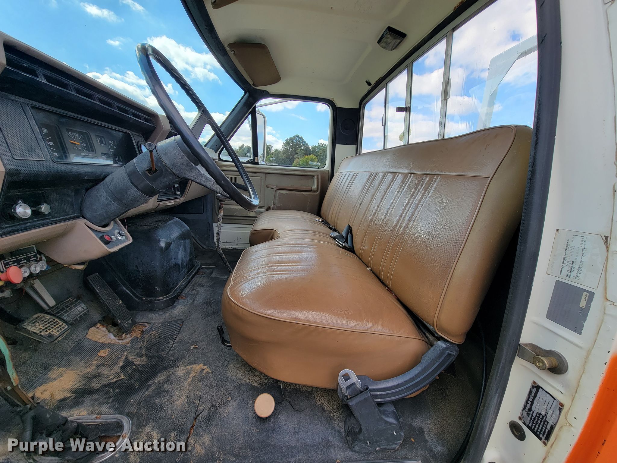 1987 Ford 5700 digger derrick truck. Miles: 31,608 on odometer, VIN: 1FDWT74P8HVA45067. Engine Displacement: 6.6L, Cylinders: 6, Fuel type: Diesel. Transmission Manual, Speed: 6. Chassis Axles: Single, Suspension: Spring, Brakes: Air, PTO, GVWR: 21,200 lbs, Wheelbase: 175". Interior Heat. Operational Bed 11' 8" L x 89" W, Boom Boom length: 7', Mast height: 14', Boom type: Telescopic, Boom controls Ground, Auger Diameter: 12", Tulsa winch Capacity: 50 tons. Tires Size: 9.00-20. Notes Auger issues, hydraulic leak. Kentucky title. Crawford Equipment, Inc.. 232 Carter Rd. Mayfield, KY 42066