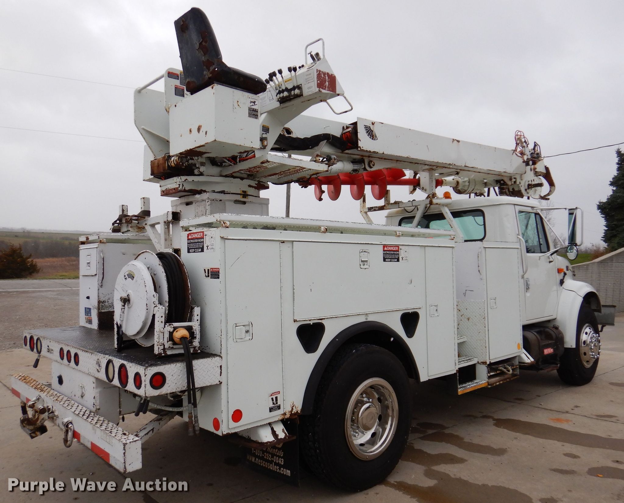 Purple Wave is selling a used Digger Derrick Truck in Iowa. This item is a 2001 International 4900 pressure digger truck with the following: Miles: 110,561 on odometer, Hours: 9,246 on meter, VIN: 1HTSDAAN61H343821
