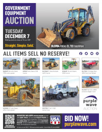 Equipment descriptions are based on our direct observation and information provided by our selling customer. All information is intended to be as accurate as possible. However, we recommend customers inspect prior to bidding. Purple Wave listings are not intended to be substitutions for inspection. The details provided may differ on equipment based on information provided by the consignor. An error or omission in the listing will not change the results of the bid. It is the responsibility of the buyer to conduct any inspection and examination necessary to satisfy him of all material facts before placing a bid. Some of the limitations of Purple Wave listings include: