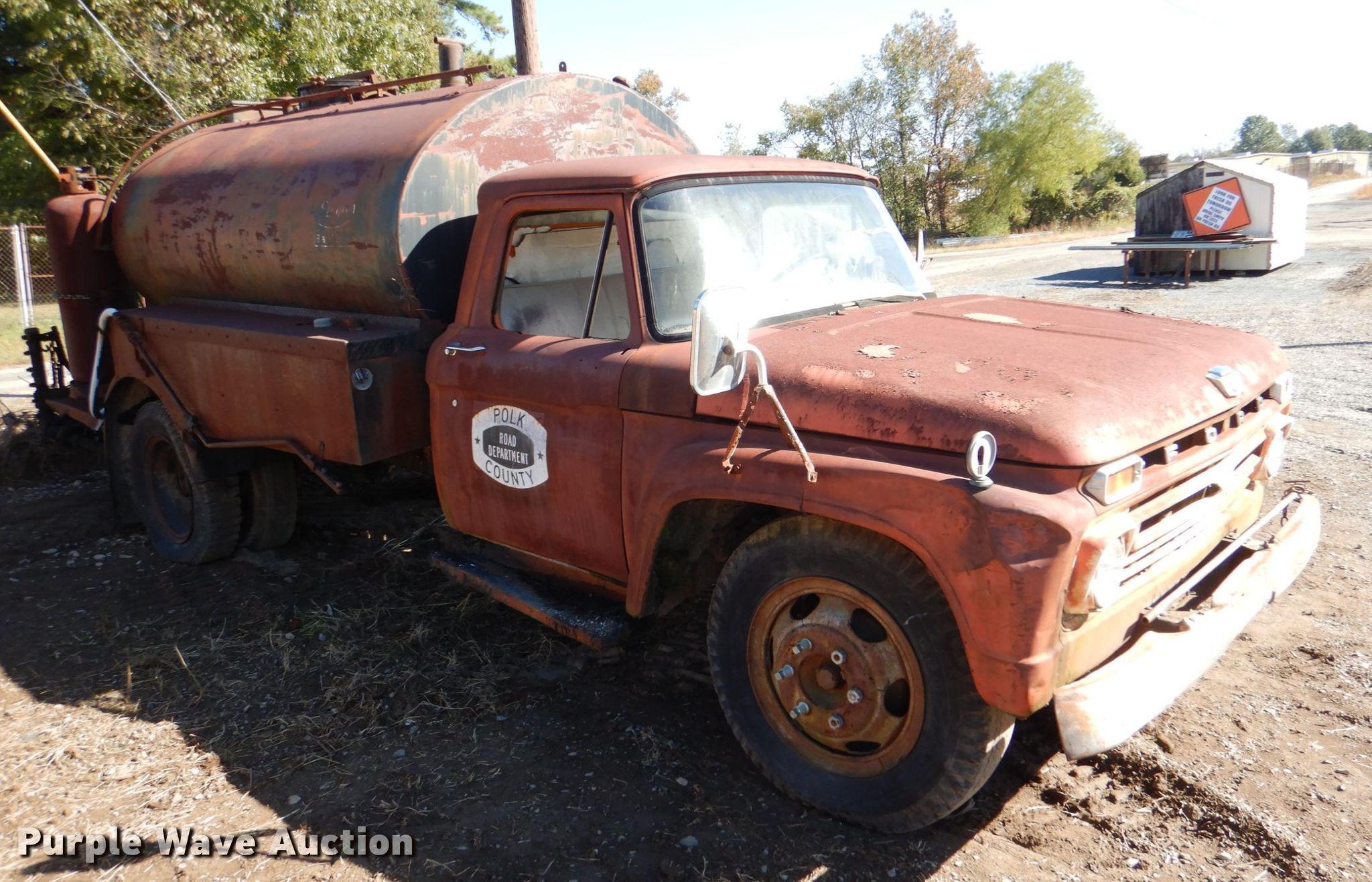 Purple Wave is selling a used Tank Truck or Water Truck in Arkansas. This item is a 1966 Ford CB oil distributor truck with the following: Miles: 9,112 on odometer, VIN: F60CK889111
