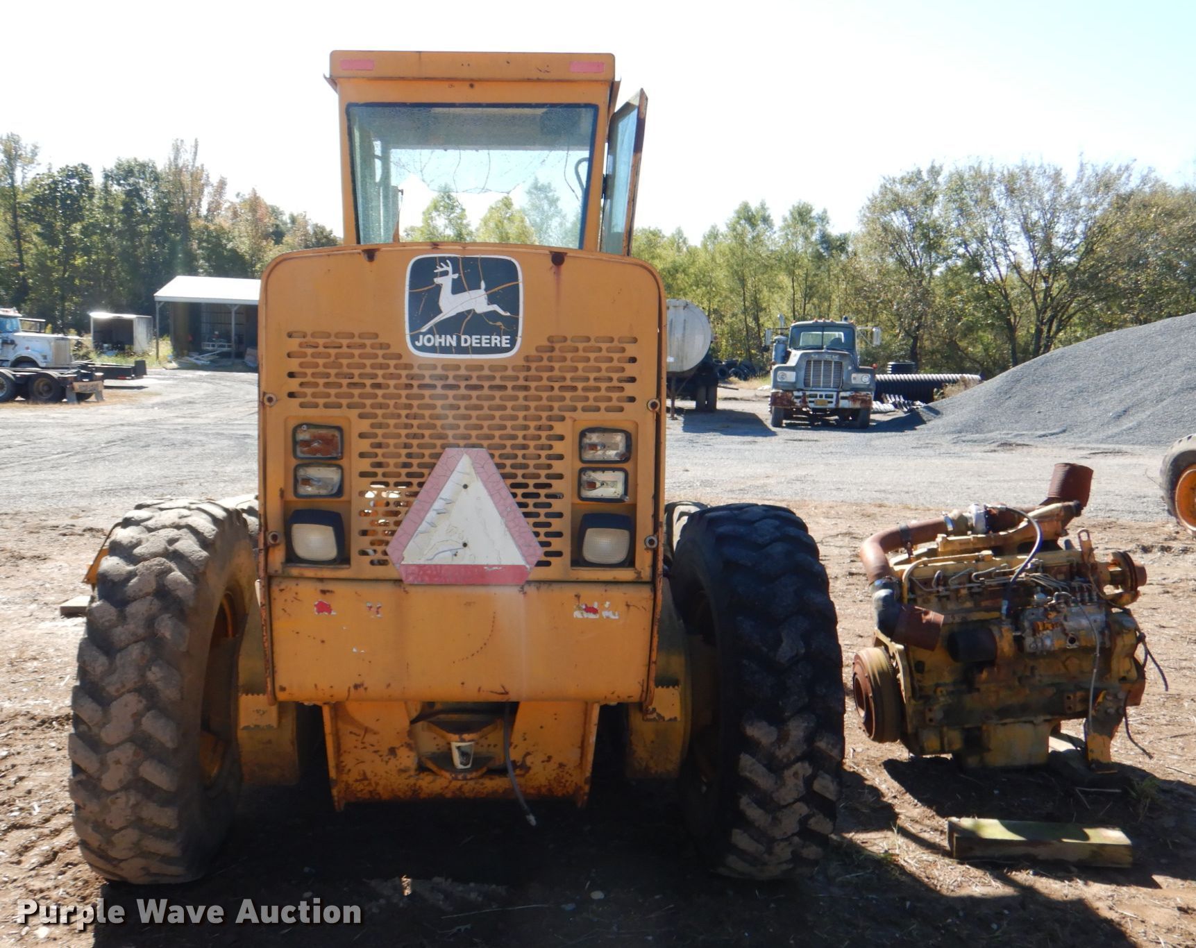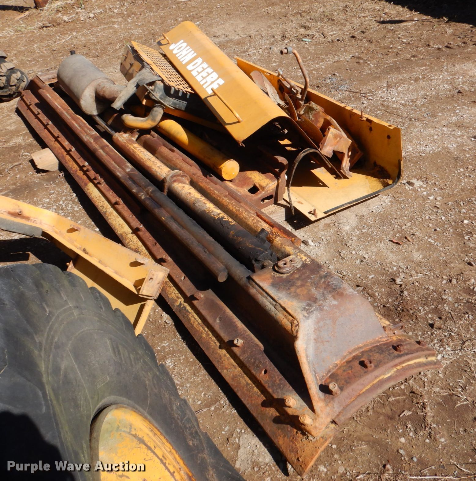 John Deere 770B motor grader. Unknown hours on meter. Engine John Deere, Cylinders: 6, Fuel type: Diesel. Transmission Powershift, 8F - 4R. Chassis All wheel drive. Operators station EROPS AC, Heat, Hydraulic control valves: 8. Operational Moldboard: Tip control, Side shift, Moldboard total length: 14'. Tires Size: 14.00R24. Notes Parts missing, Disassembled, Non-operational unit. Polk County, AR. 135 Polk Rd 733. Mena, AR 71953