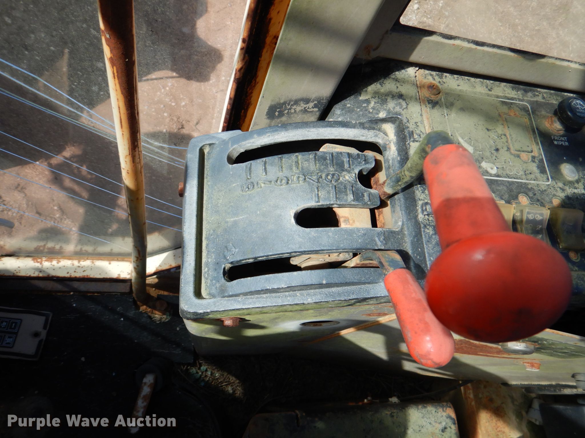 1991 John Deere 770BH motor grader. Serial: DW770BH531596. Engine Fuel type: Diesel. Transmission Powershift, 8F - 4R. Chassis All wheel drive. Operators station EROPS AC, Heat, Hydraulic control valves: 8. Operational Moldboard: Tip control, Side shift, Moldboard total length: 14'. Tires Size: 14.00R24. Notes Moldboard detached, Engine compartment door locked, Non-operational unit. Polk County, AR. 135 Polk Rd 733. Mena, AR 71953