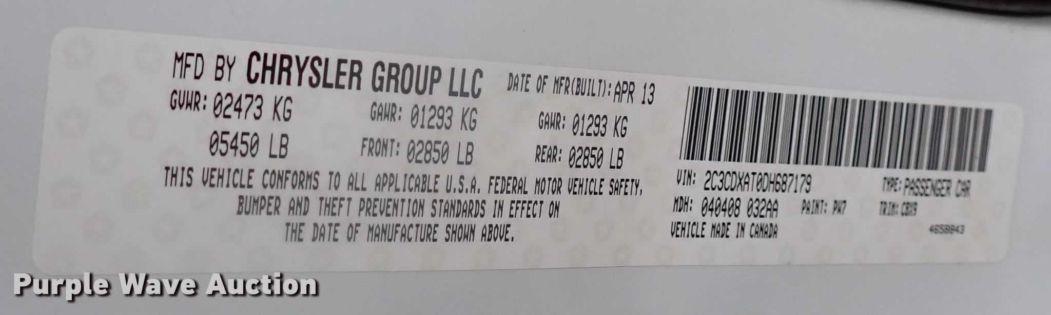 Purple Wave is selling a used Passenger Vehicle in Kansas. This item is a 2013 Dodge Charger Police with the following: Miles: 118,369 on odometer, VIN: 2C3CDXAT0DH687179