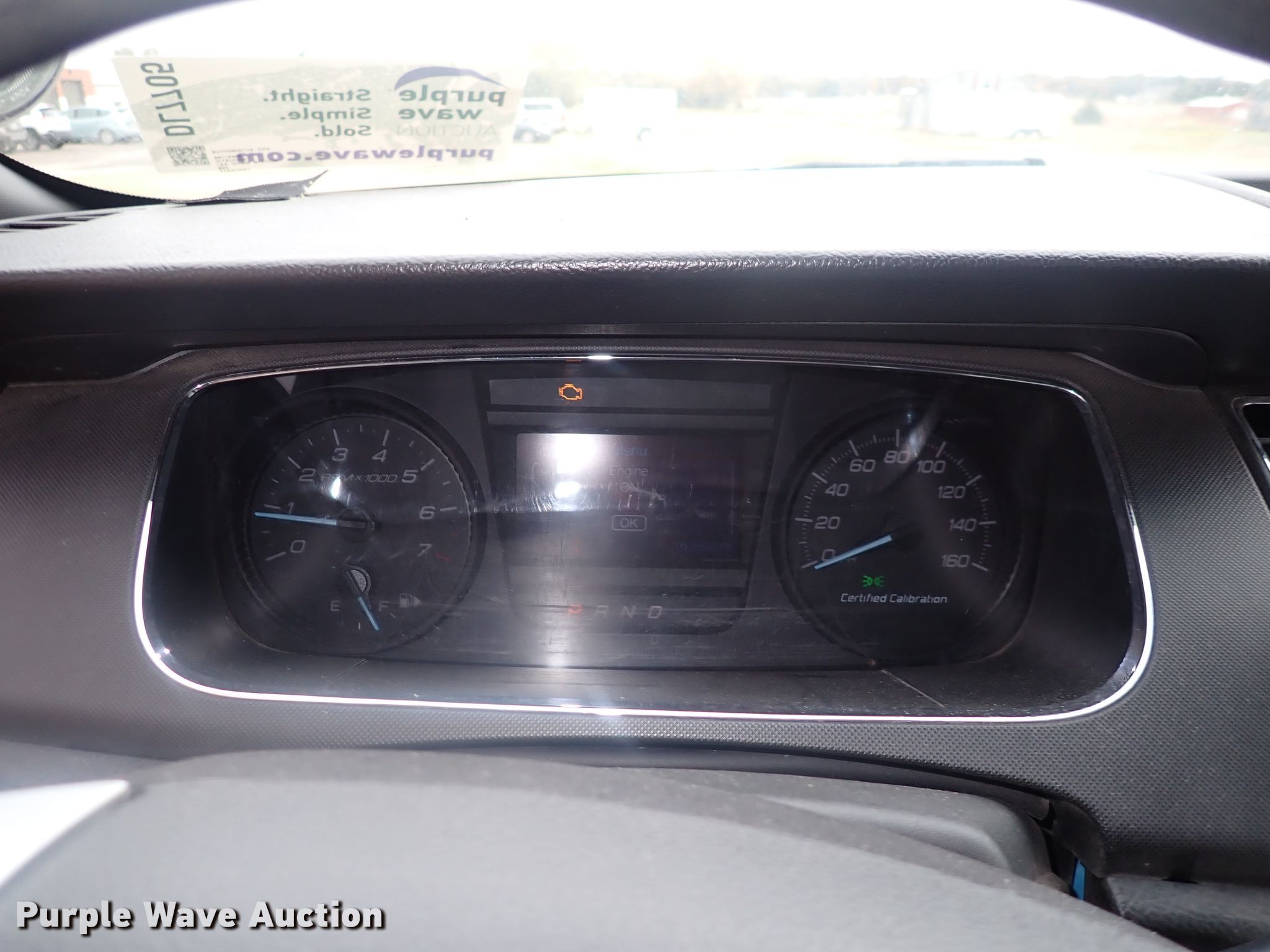 2014 Ford Taurus Police Interceptor. Miles: 163,692 on odometer, VIN: 1FAHP2L85EG170371. Engine Displacement: 3.5L V6 DOHC 24V, Cylinders: 8, Fuel type: Gas. Transmission Automatic. Interior AC, Heat, Seat: Power driver, Power windows, Cruise control. Tires Size: 245/55R18. Notes Dash warning indicator: Check engine, Windshield chipped or cracked, Weak battery, Non-operational FM radio. Kansas title. Rice County Sheriff. 1442 W Commercial St. Lyons, KS 67554