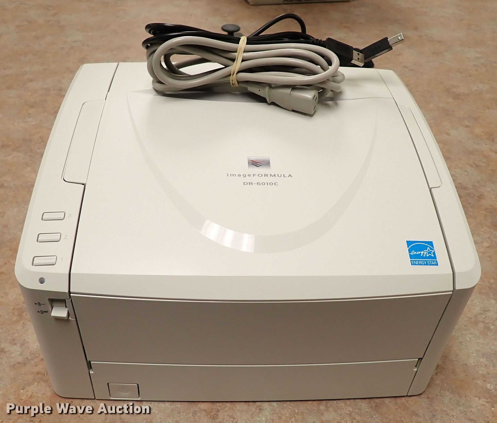 Purple Wave is selling a used Electronics in Oklahoma. This item is a Canon DR-6010C scanner with the following: Power supply, Computer cable