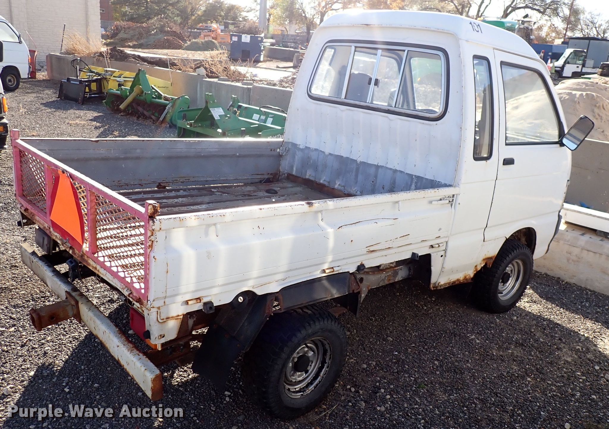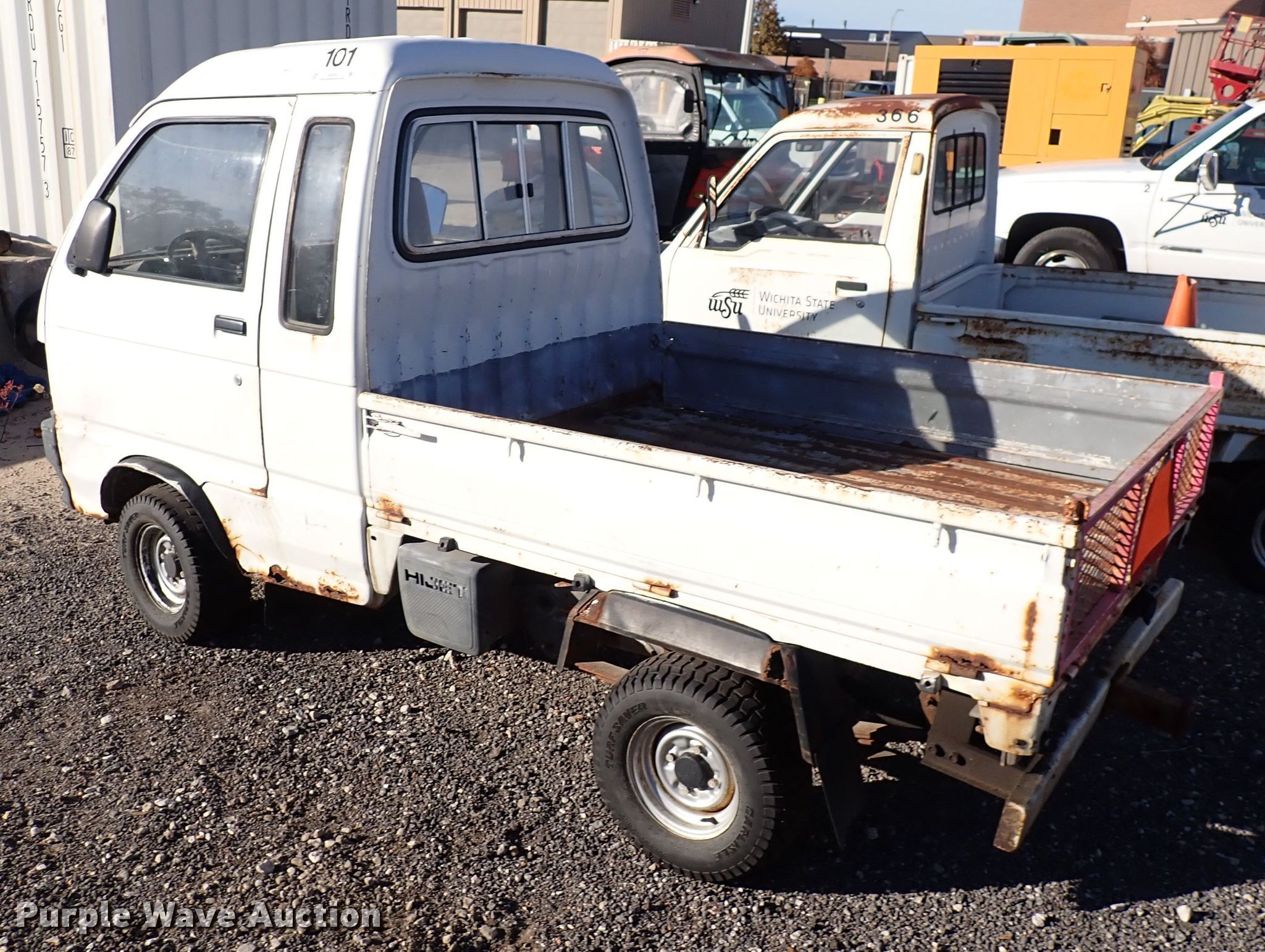 Daihatsu mini truck. Miles: 54,048 on odometer, VIN: JDA000S8000309457, Unit #: 101. Engine Fuel type: Gas. Transmission Manual. Interior Heat. Operational Bed: 68" x 54". Tires Size: 20x8.00-10. Kansas non-highway title. Title distribution may be delayed up to 14 days from verification of funds. Wichita State University Physical Plant. 1845 N Fairmount Ave. Wichita, KS 67260