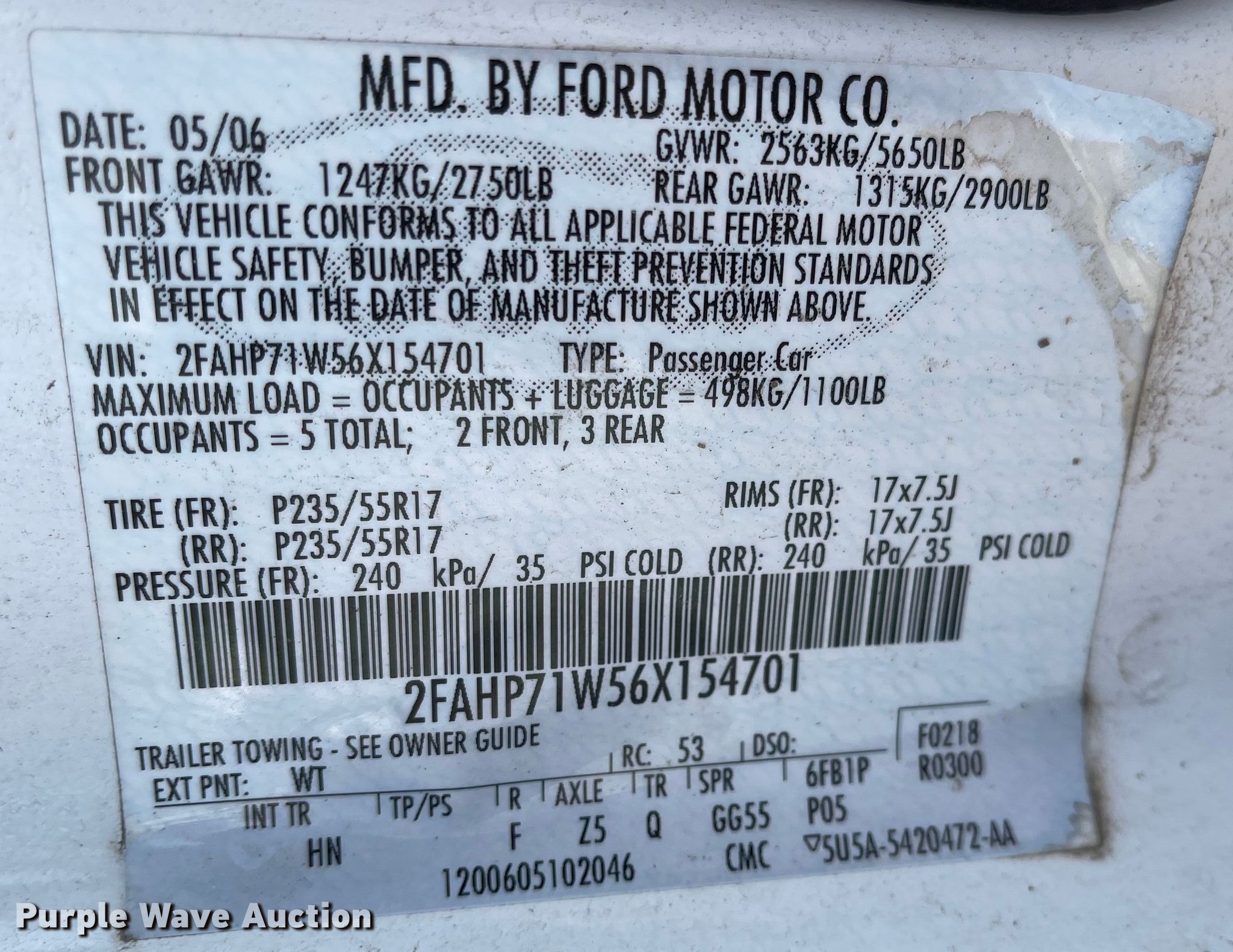 2006 Ford Crown Victoria Police Interceptor. Miles: 113,862 on odometer, VIN: 2FAHP71W56X154701. Engine Displacement: 4.6L V8 SOHC 16V, Cylinders: 8, Fuel type: Gas. Transmission Automatic. Interior AC, Heat, Power windows, Power locks, Cruise control. Tires Size: 235/55R17. Notes Dash warning indicator: Check engine, Air bag. Nebraska title. Seller is a government entity who will be assigning and distributing the title. Please contact the seller for distribution questions. City of Ceresco NE. 217 S 2nd St. Ceresco, NE 68017