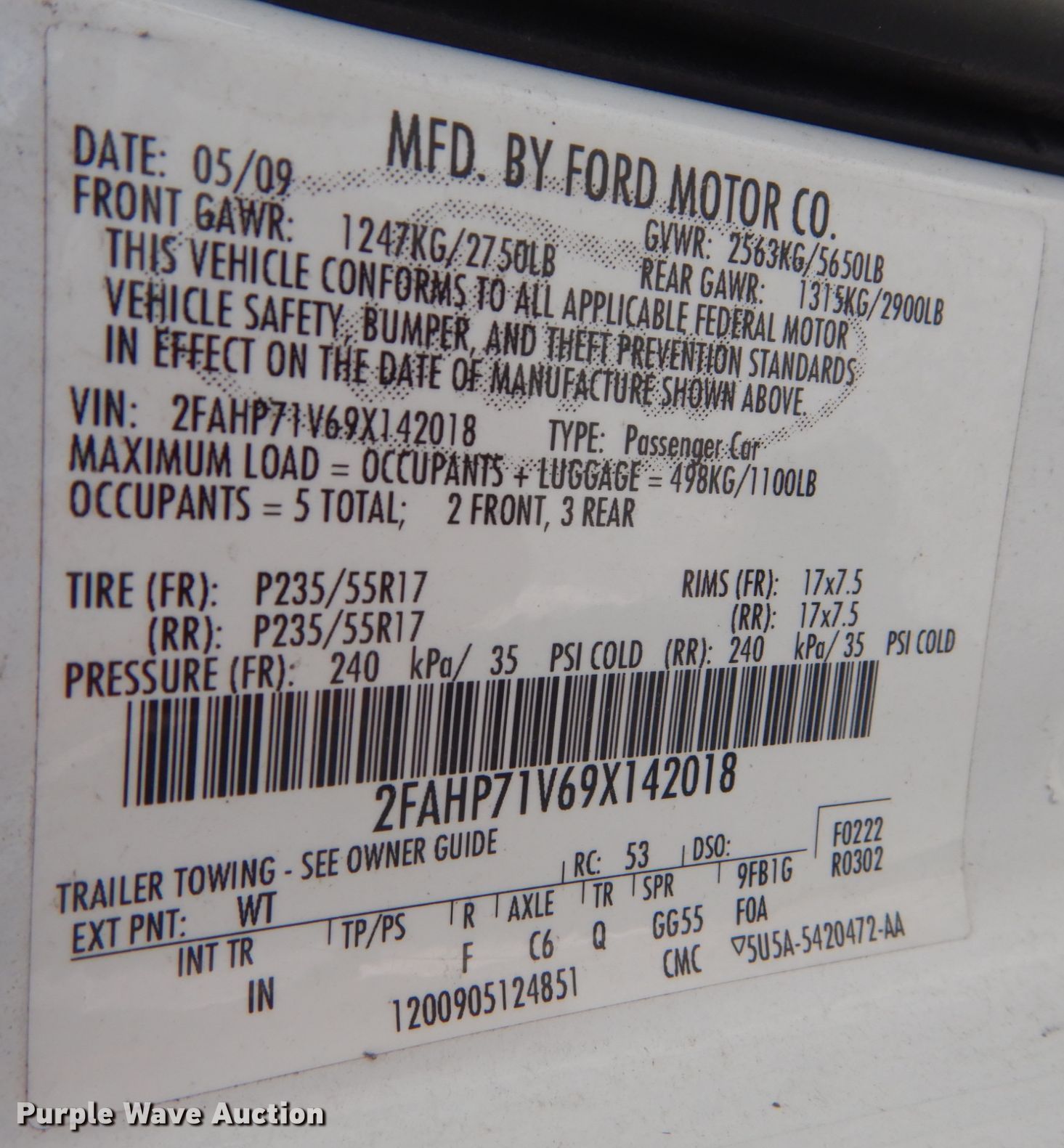 2009 Ford Crown Victoria Police Interceptor. Miles: 93,998 on odometer, Hours: 3,552 on meter, VIN: 2FAHP71V69X142018. Engine Displacement: 4.6L V8 SOHC 16V, Cylinders: 8, Fuel type: Gas. Transmission Automatic. Interior AC, Heat, Power windows, Power locks, Cruise control. Tires Size: 235/55R17. Notes Dash warning indicator: TPMS, Air bag, Dead battery. Missouri title. Eastern Missouri Police Academy. 11 Meadows Circle Dr. Lake Saint Louis, MO 63367