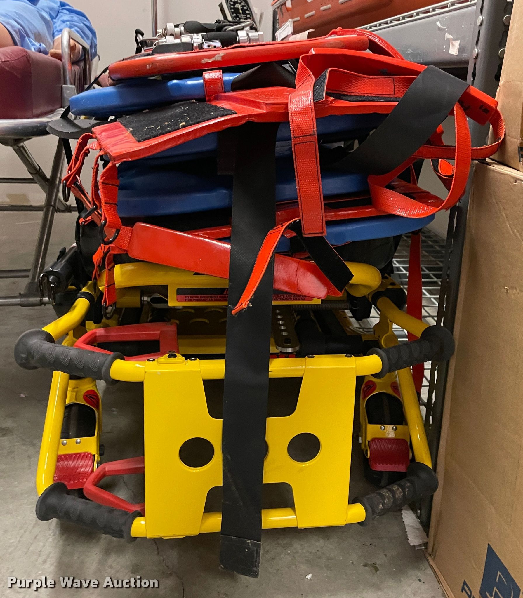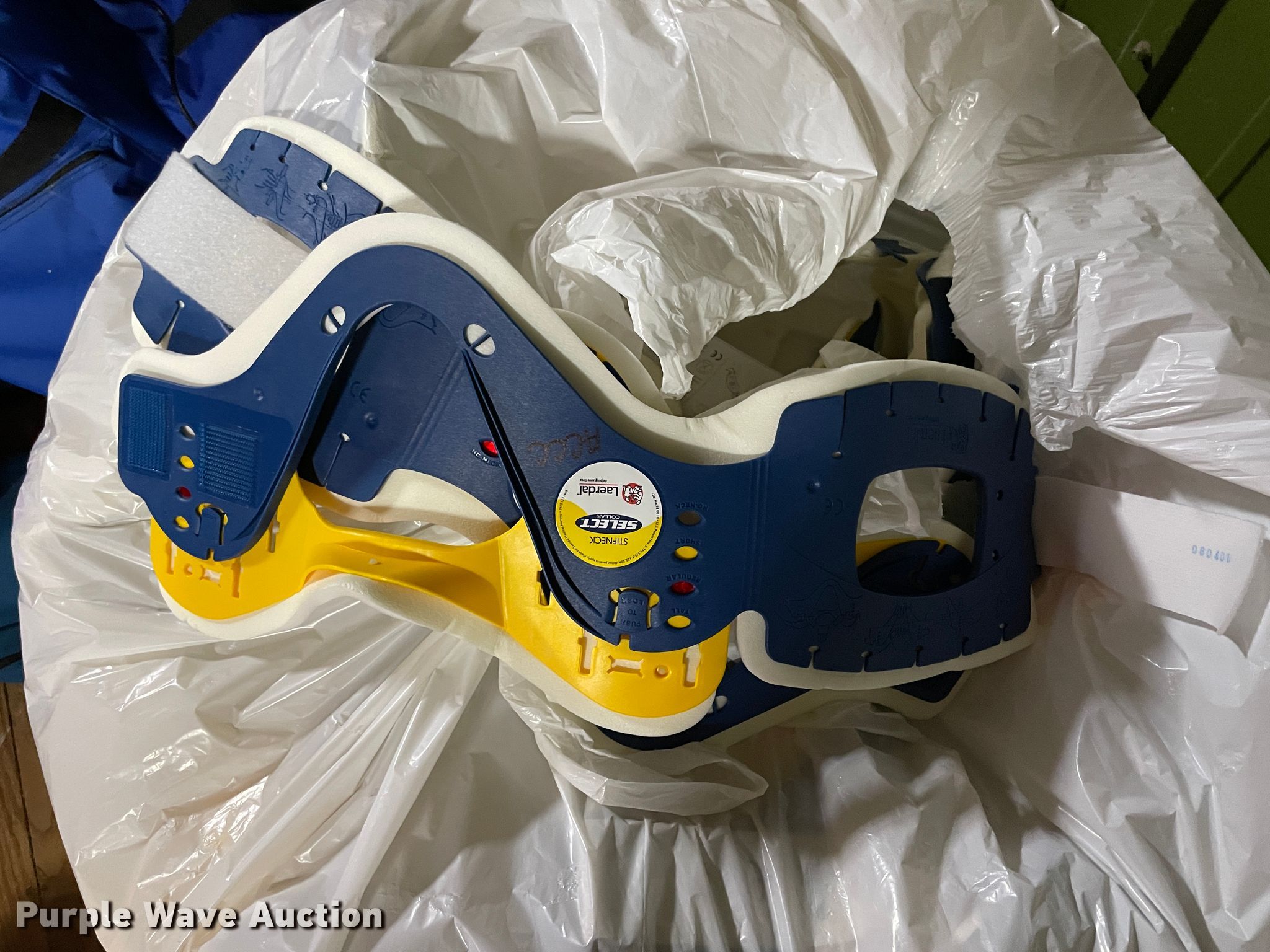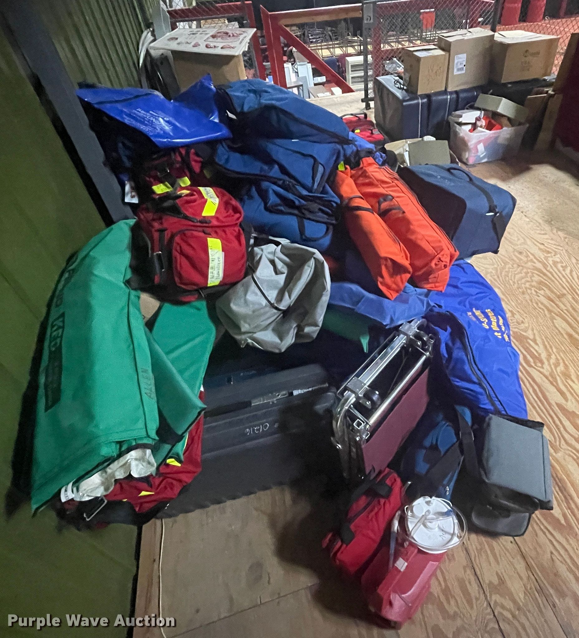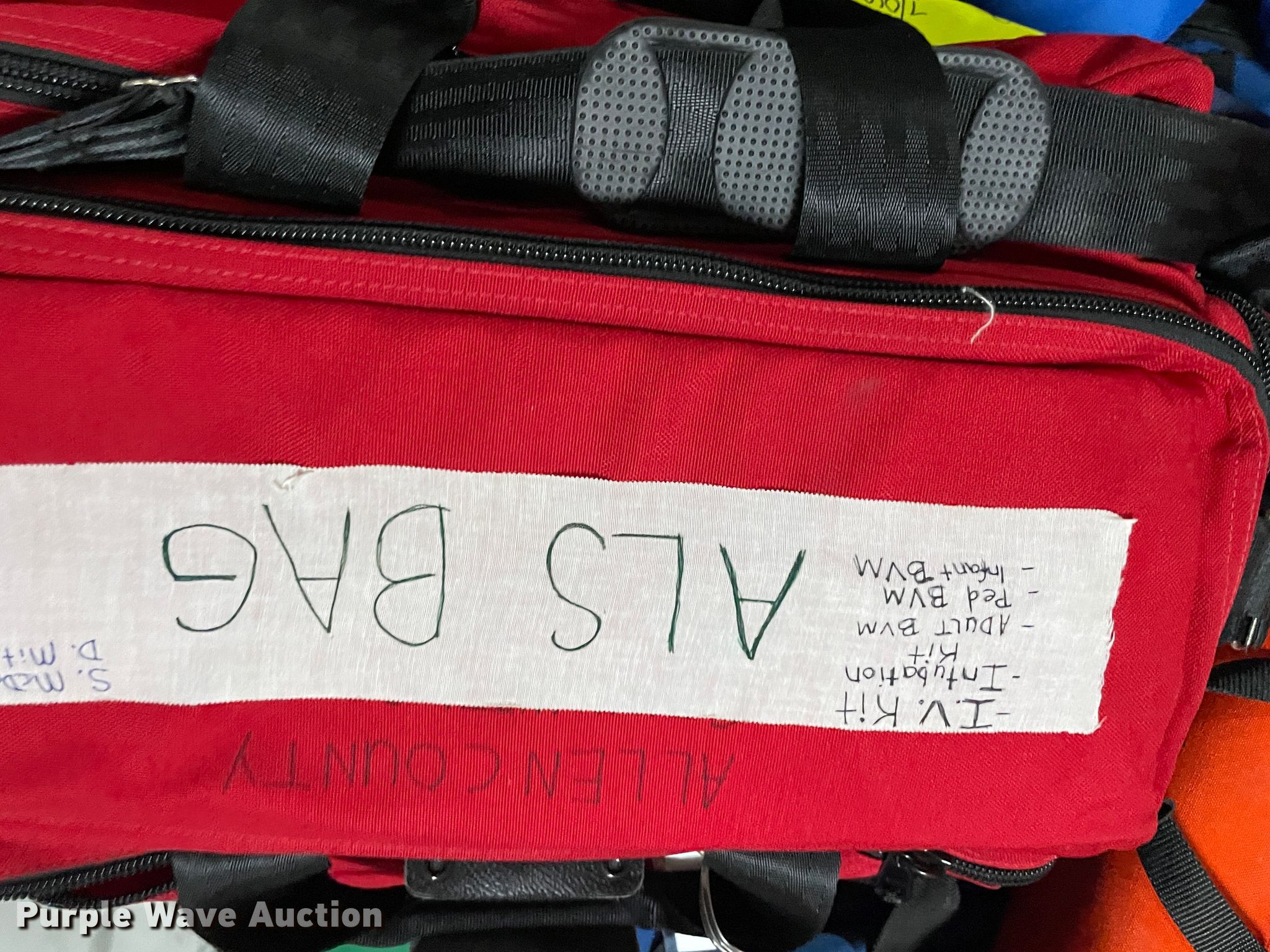 Purple Wave is selling a used Medical Equip. in Kansas. This item is a Medical training supplies with the following: (2) ALS drug bags, (2) extrication devices, (3) airway kits, (4) oxygen tanks, (5) body part signs, (6) back board, Adult and child B.V.M totes, Mattress, Aeronistic nebulizers, Airway management trainer, Auto pulse battery charger, B.V.M. infant tote bag, Bag of belt buckles, Bag of head baskets stretchers, Bix box of B.V.M parts, Blood pressure cuffs, Blood pressure meter, BLS bags, Body bag, Box of cords, Brace support tote, Bradycardia, Broselow / Hinkle pediatric ALS color coded organizer, (6) cases of Chris Clean and Armstrong CPR mannequins, Dula plane head drop, Empty traction splint bag, EMT bed with dummy, EVAC U-Splint, F.A.S.T. 1 training system, Face masks tote folding chair, Fracture pack, GRIPA, I.V. arm, I.V. kit, I.V. stand, Infectious waste bin, Intubation kit, Red bag, IV pump, (3) Jamar Hand dynamometer jobst anti-shock air pants, Laerdal bag, Laerdal vitalism vital sign simulator, Lange skinfold caliper LCSU laerdal compat suction units, Leg splints, Life form replica mannequin, Life support kits, Little Anne bags, One box of lungs, Mannequins, Mast 111-AT medical anti-shock, Medical bag, Mega code kid trauma laerdal, Motorcycle helmet, MX PRO EMT bed, Neck braces, Non-breathing bag, Long boars, Oregon Spine Spint II, PEDI-AIR align, Pulmonated compressor, Resusci Anne Torso, Resusci baby, S400 intubation, Sager emergency traction splints, S-Scort JR quickdraw, S-Scort machine, Stair chair, Stretcher, Traction splint, Vital signs, Zoll A.E.D. machine, Zoll autopulse resuscitation system, Zoll base power charger 17 battery