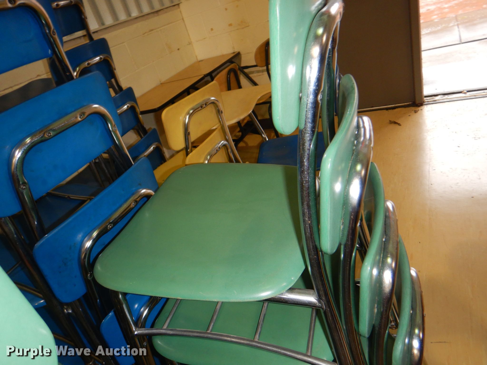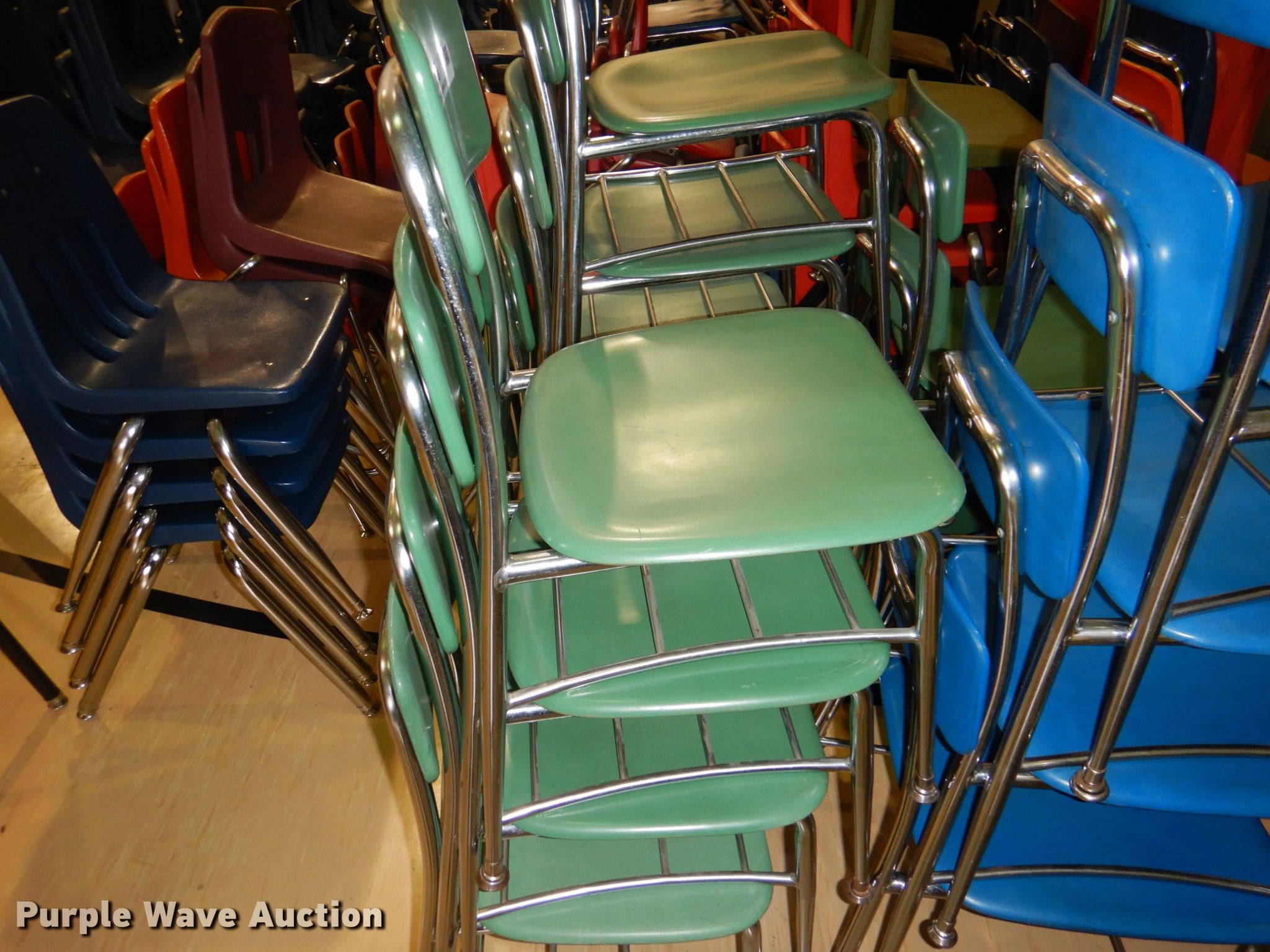 Purple Wave is selling a used Furniture in Iowa. This item is a Approximately 47 chairs with the following: Approximately 47 chairs. East Mills Community School District. 58962 380th St. Hastings, IA 51540