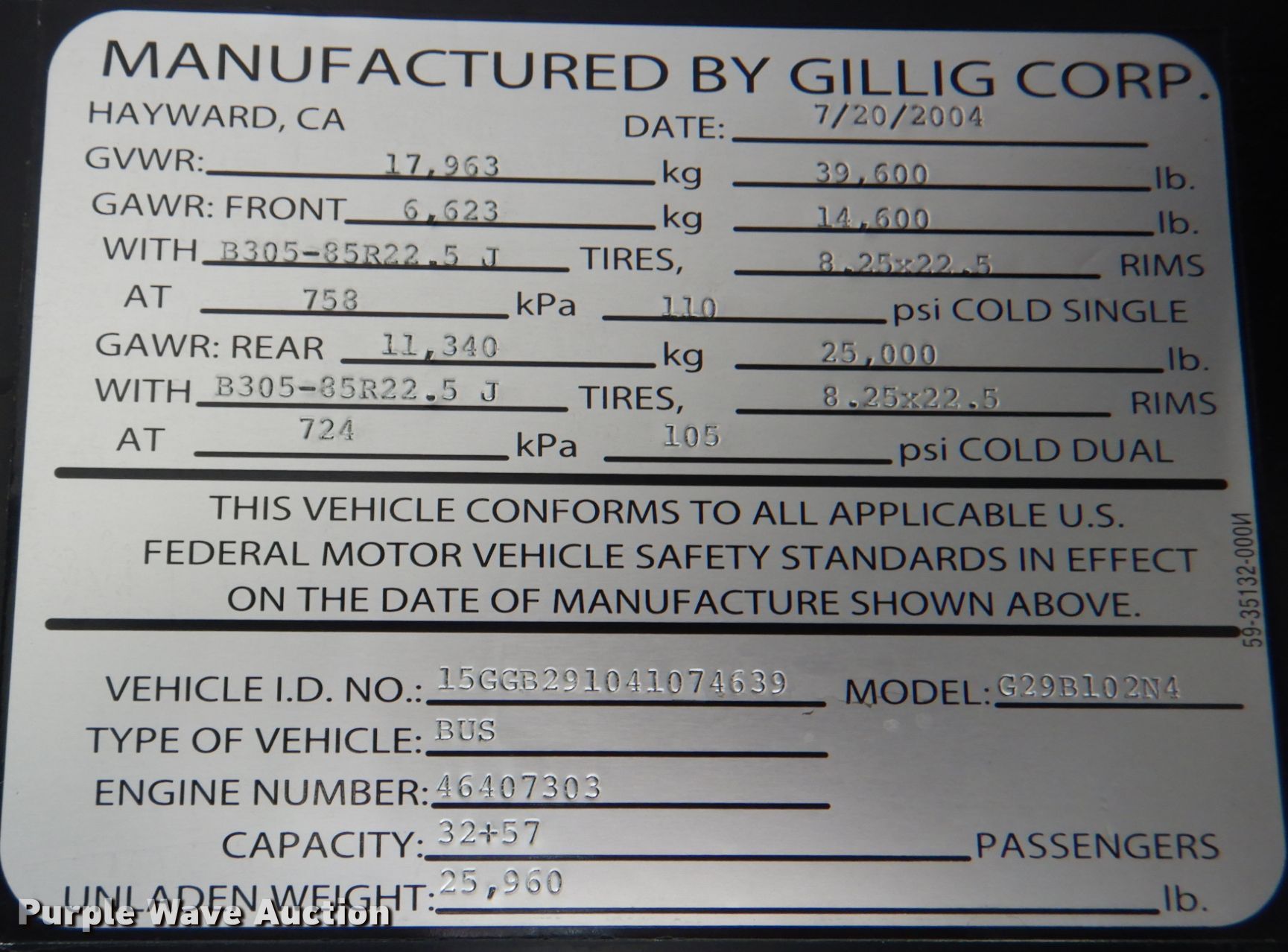 2004 Gillig G29B102N4 transit bus | SOLD! Tuesday December 7 Government Auction