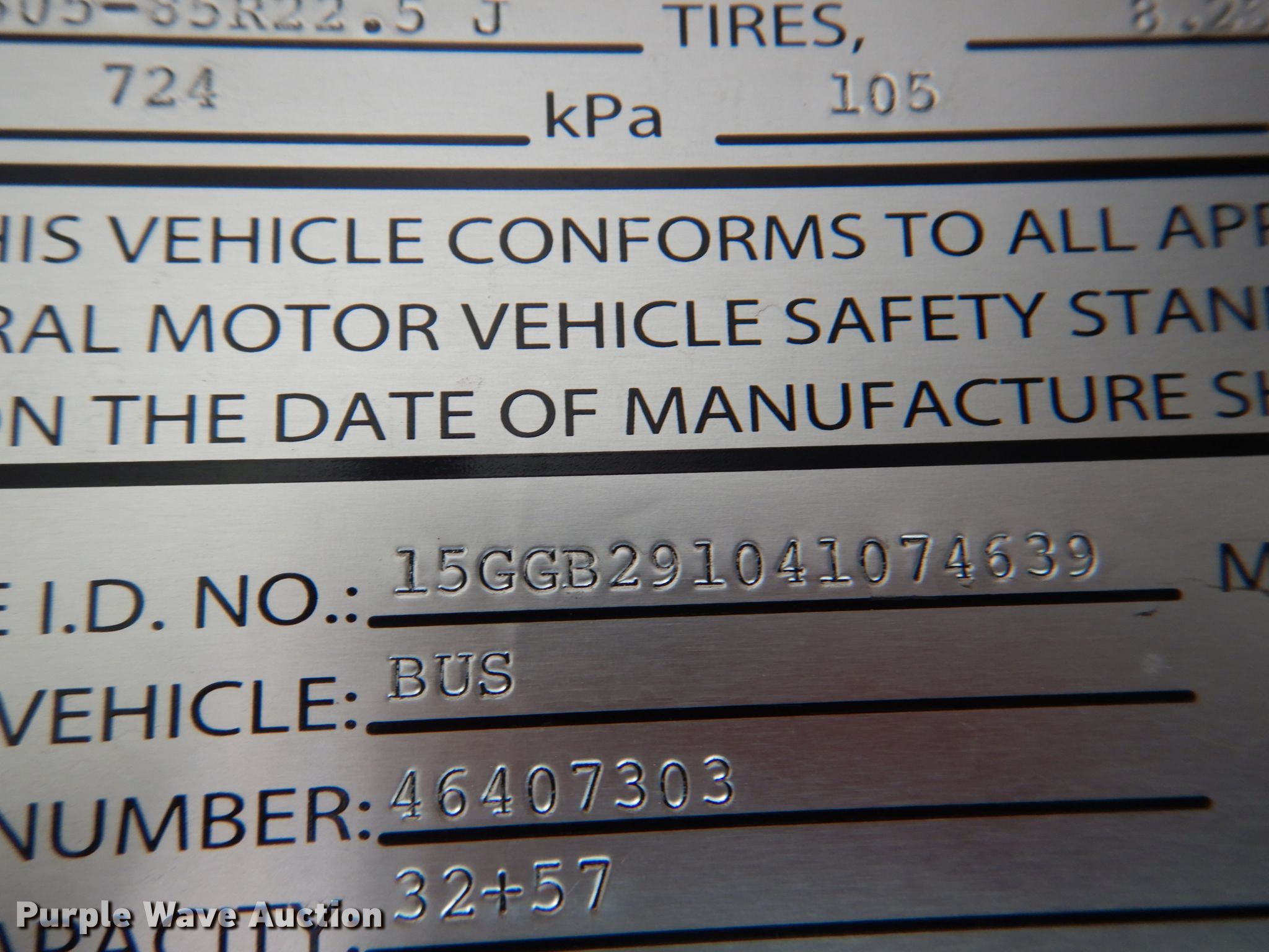 2004 Gillig G29B102N4 transit bus. Miles: 139,243 on hubometer, Estimated mileage: 490,938, VIN: 15GGB291041074639, Unit #: 677. Engine Cummins ISL, Displacement: 8.9L, Cylinders: 6, Fuel type: Diesel. Transmission Automatic. Chassis Axles: Single, Suspension: Air, Brakes: Air, GVWR: 17,963 lbs. Interior AC, Heat, Electric passenger sliding door, Passengers: 32, Seats Adult seats: 32, Wheelchair lift. Tires Size: 305/85R22.5. Notes Radiator leaks. Nebraska title. Lincoln Public Works / Star Tran. 710 J St. Lincoln, NE 68508