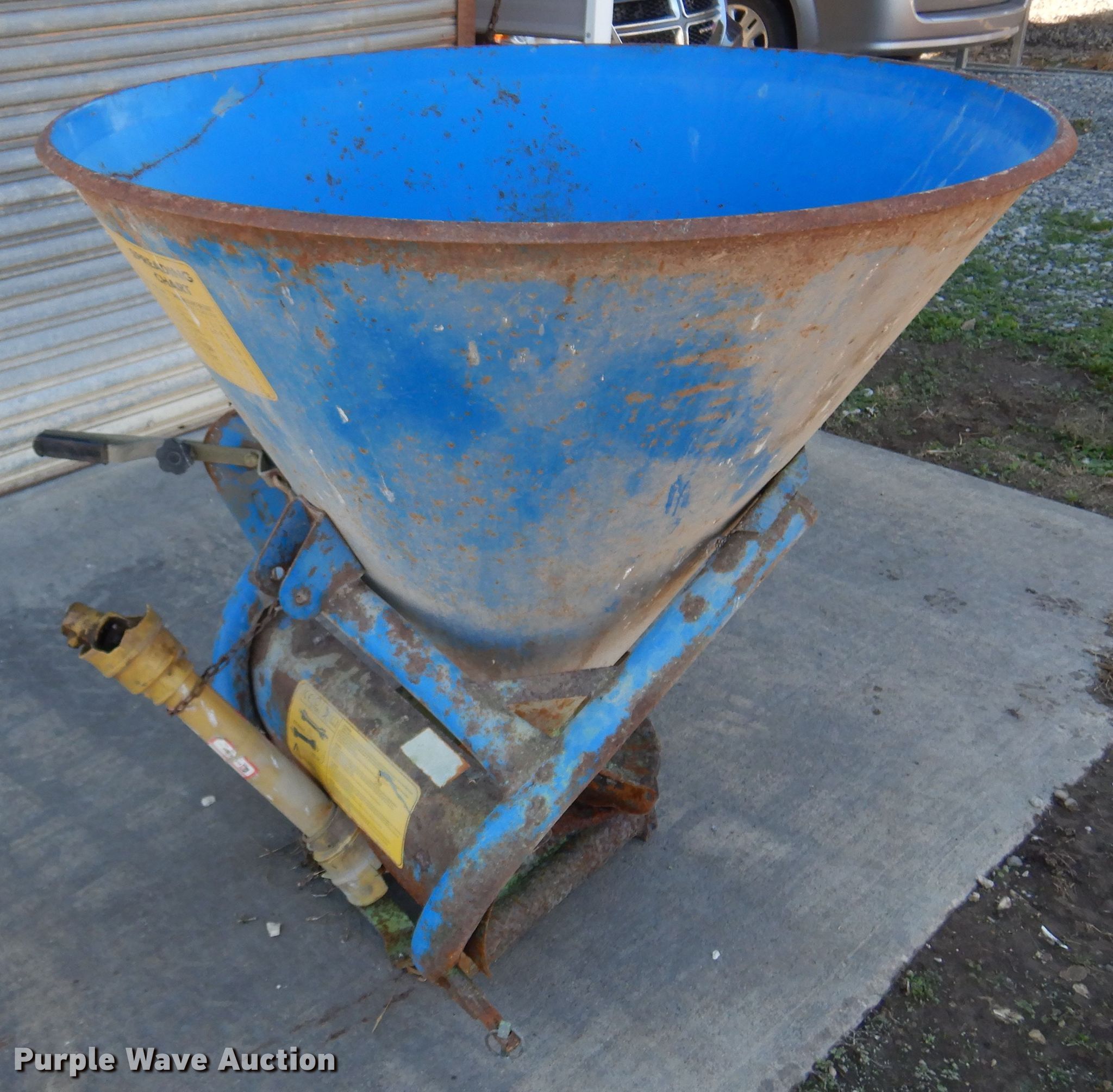 Purple Wave is selling a used Applicator Attach. in Kansas. This item is a Spreader with the following: 46"W opening, 17" diameter spinner, 540 PTO, Three point hitch