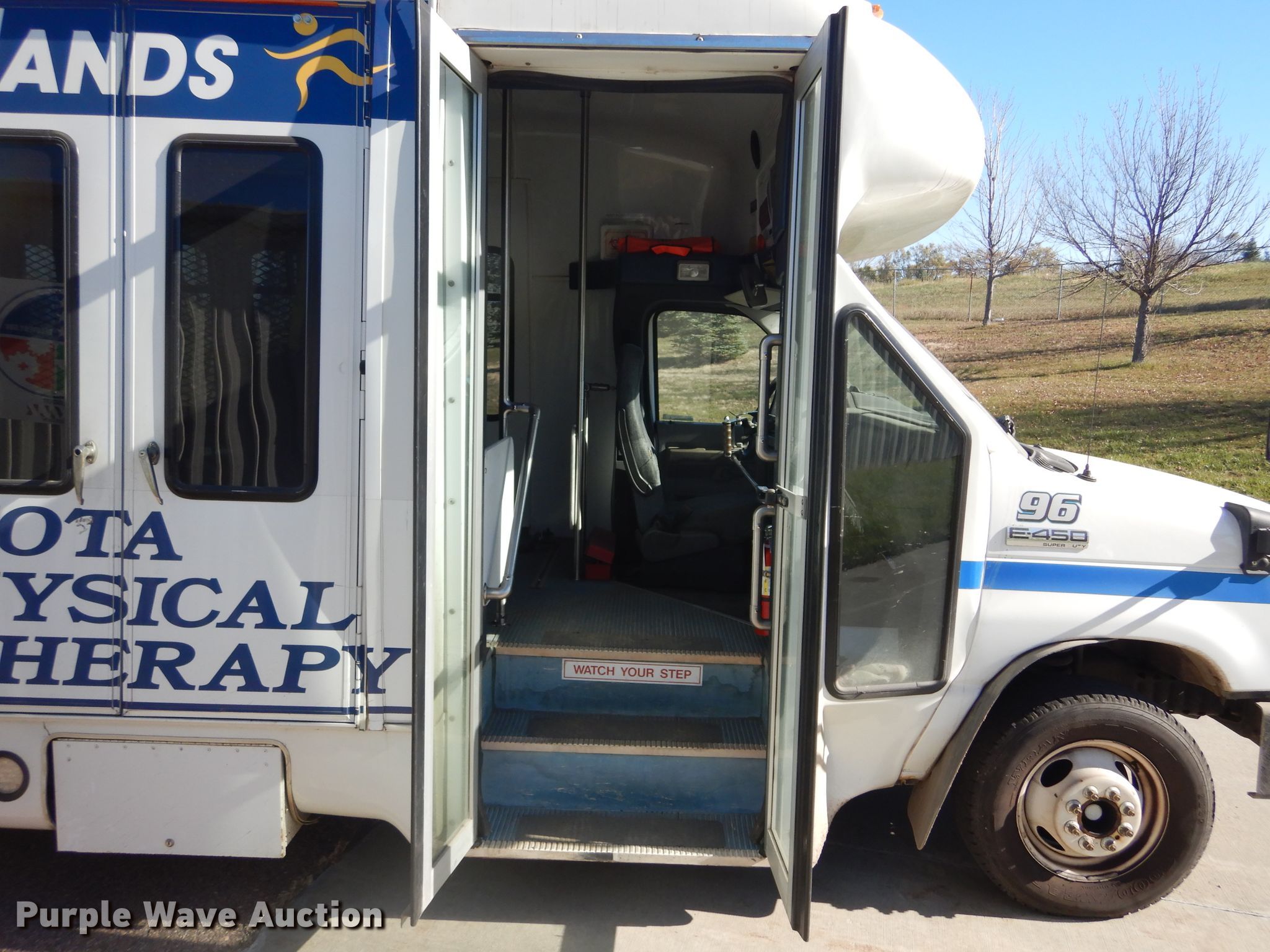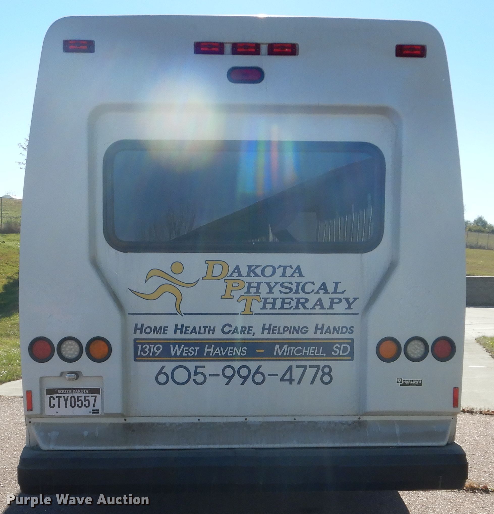 2009 Ford E450 Super Duty shuttle bus. Miles: 140,091 on odometer, VIN: 1FDFE45S69DA32935. Engine Displacement: 6.8L, Cylinders: 10, Fuel type: Gas. Transmission Automatic. Chassis Axles: Single, Suspension: Spring, Brakes: Hydraulic, GVWR: 14,500 lbs. Interior AC, Heat, Cruise control, Wheelchair lift. Tires Size: LT225/75R16. Notes Non-operational wheelchair lift. South Dakota title. City of Mitchell, SD. 612 N Main St. Mitchell, SD 57301